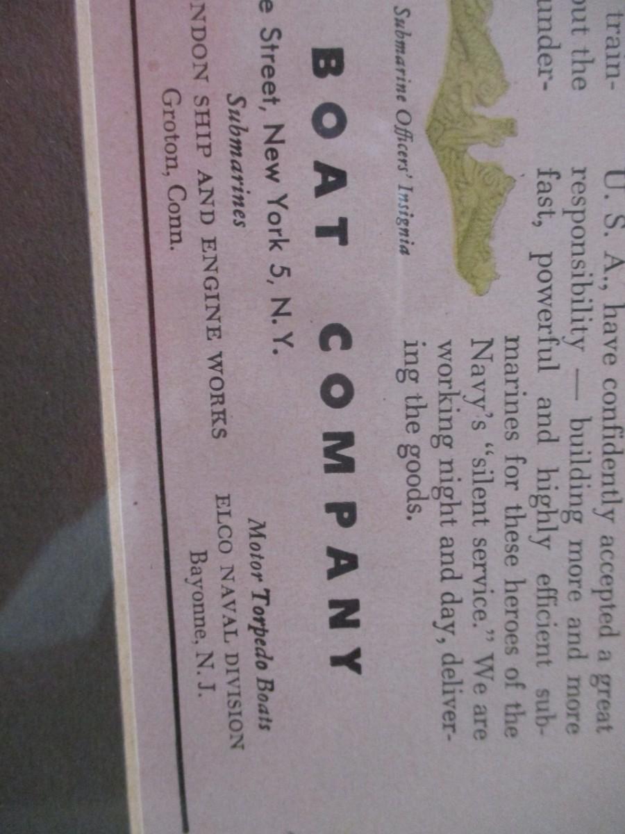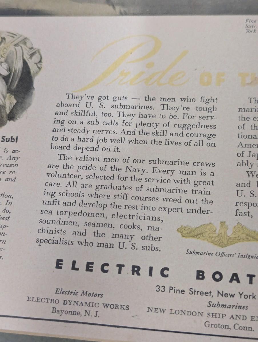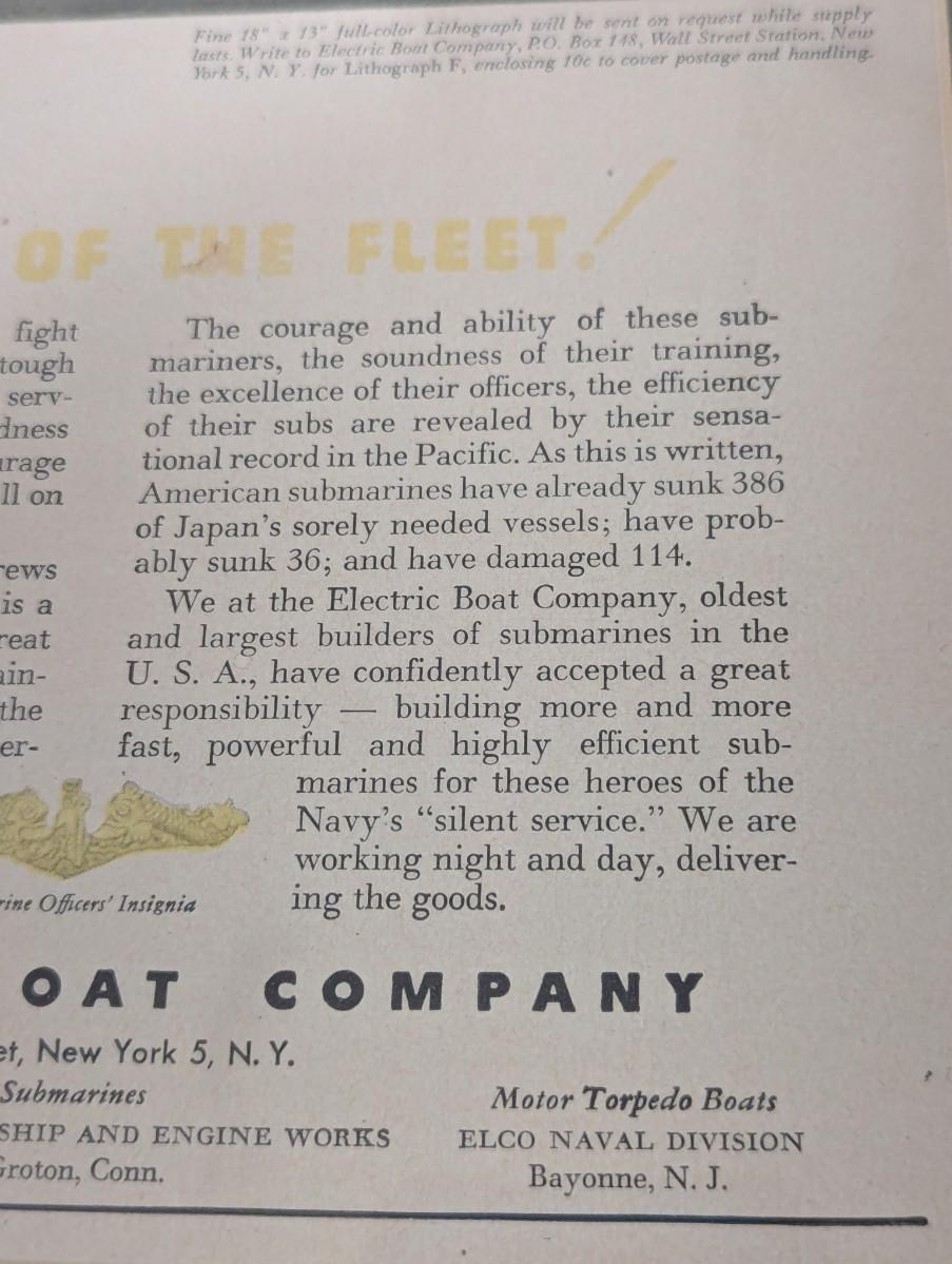 1943 Electric Boat Company Builders Of Submarines Advertising Ad (SR)