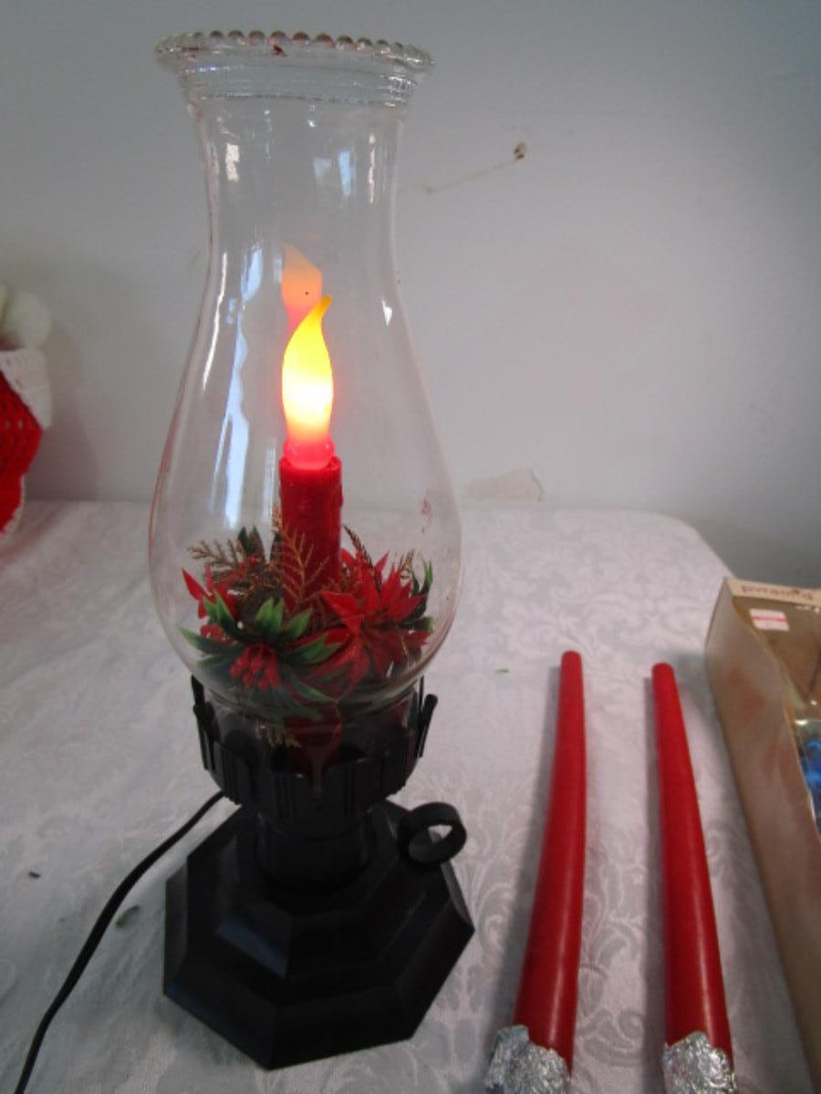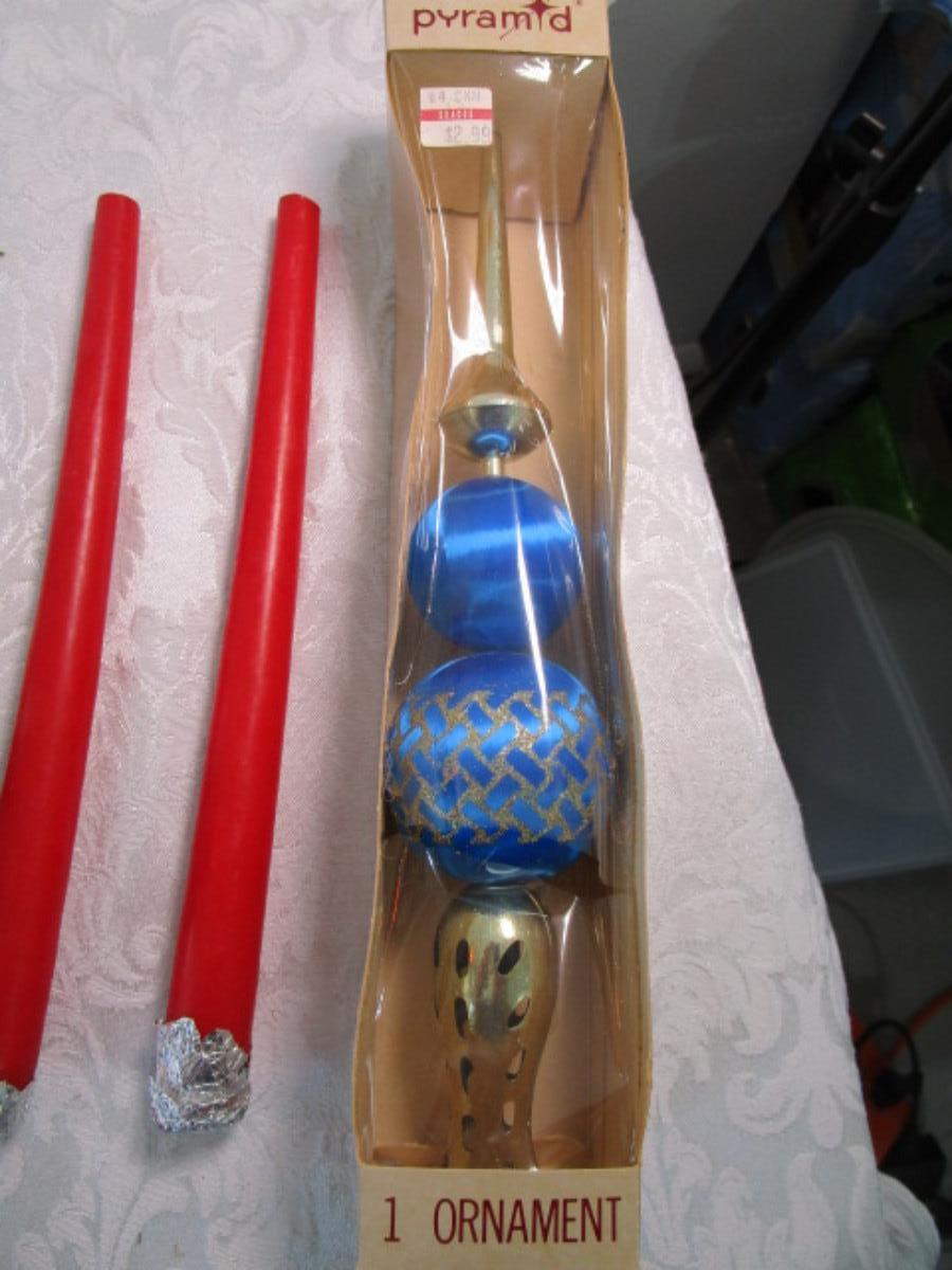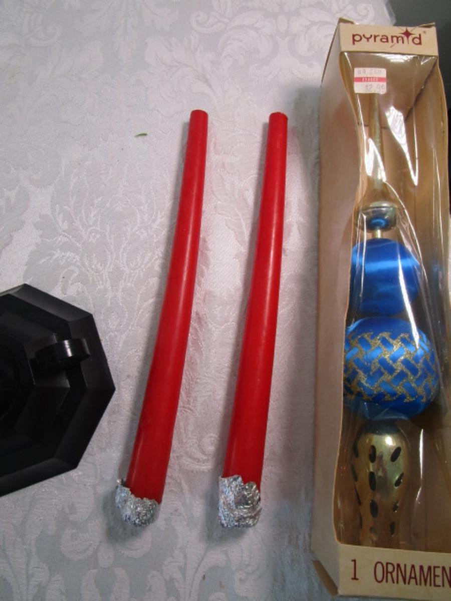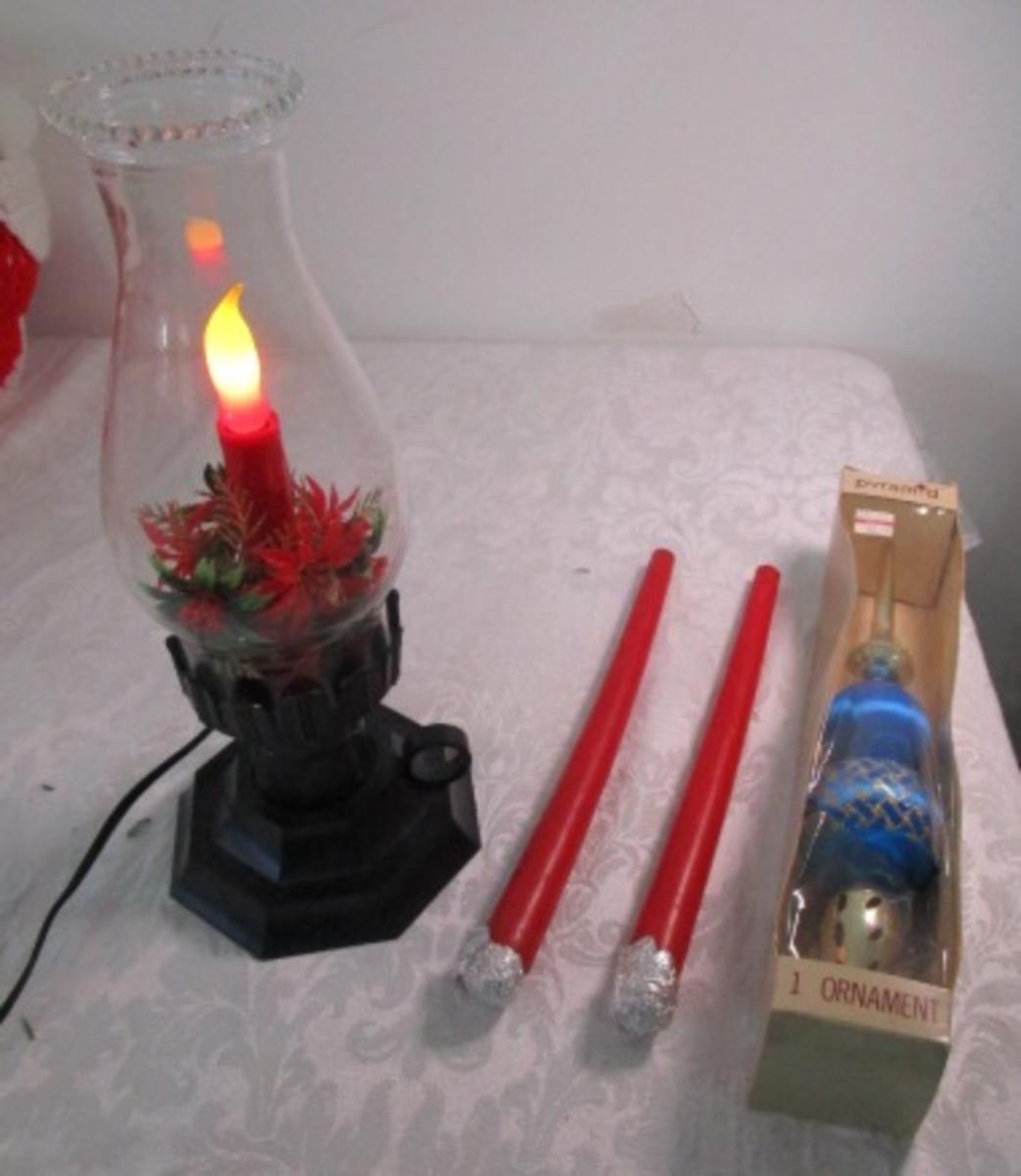 Lamp is 12-1/2" tall, Tapers are 10-1/2", Ornament is 11-1/2" tall, See pictures