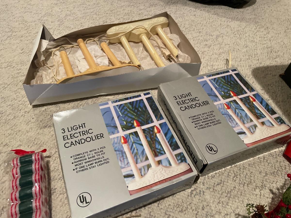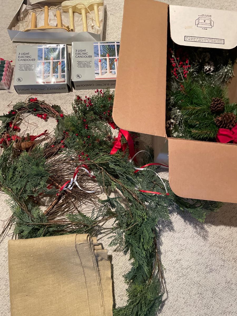 Includes a large piece of burlap, many pho, greenery items and 43 light electric Candelier