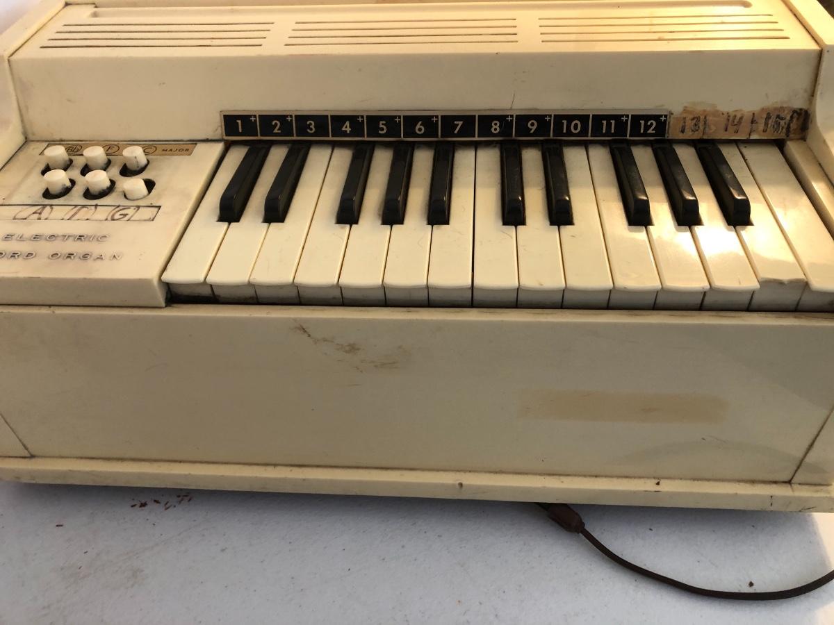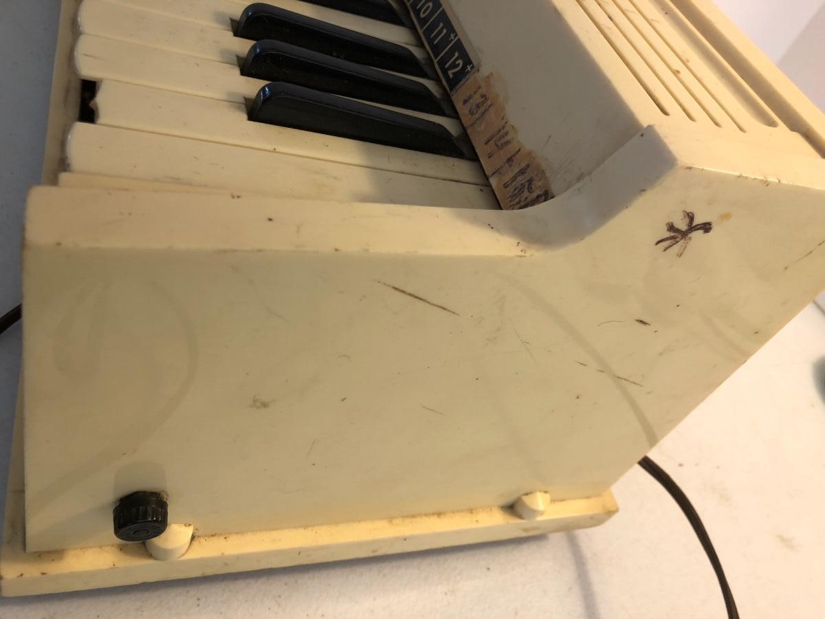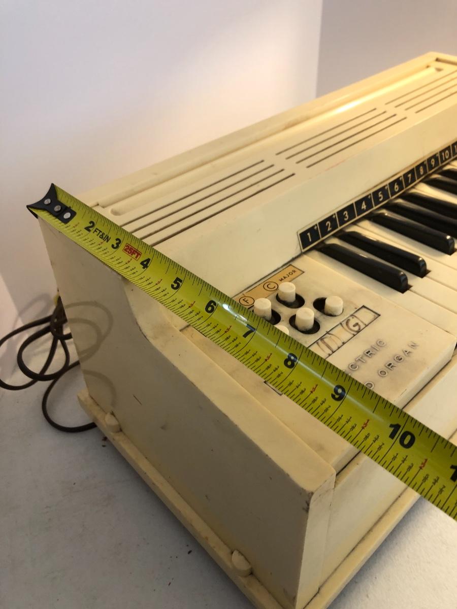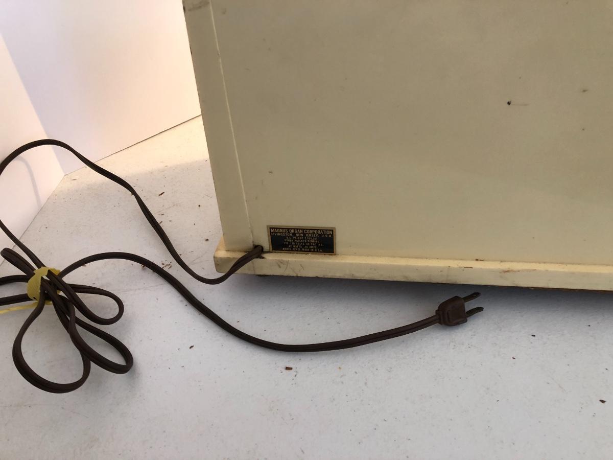 All items are sold as is, as found in the estate. Please see all photos for content, measurements and condition. Was plugged in, did come on. Did not test each key.