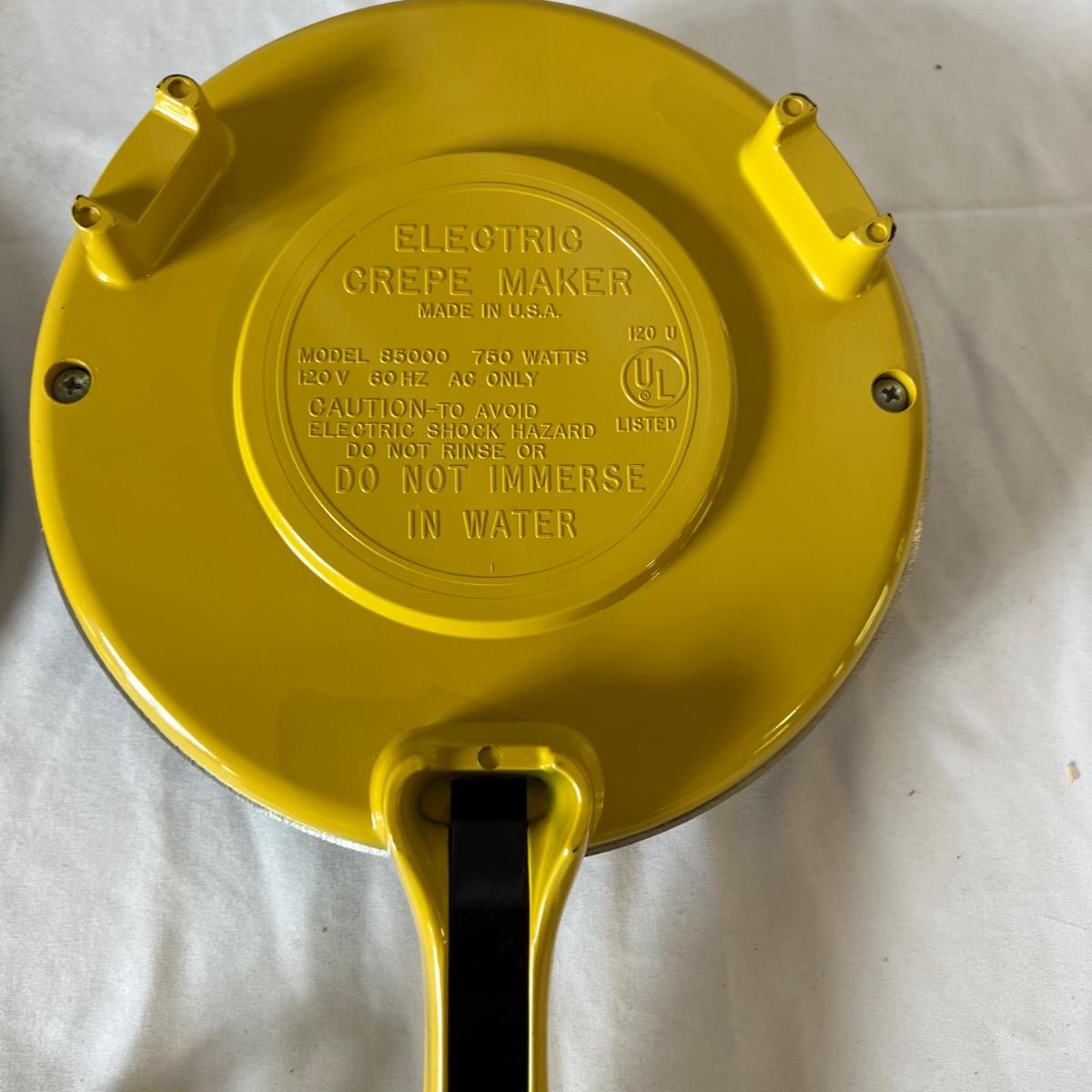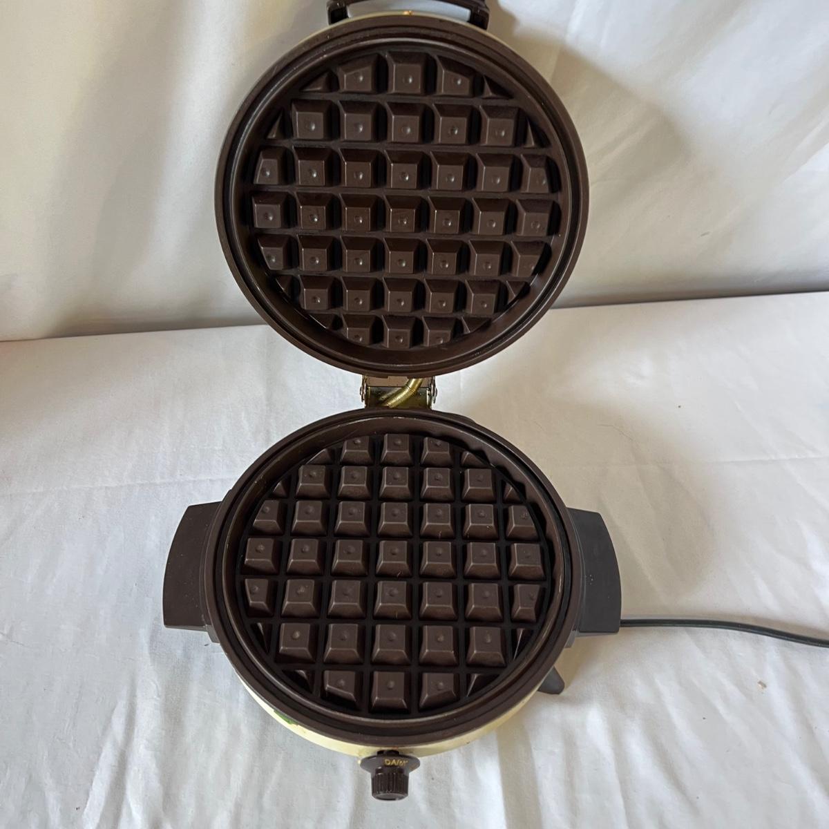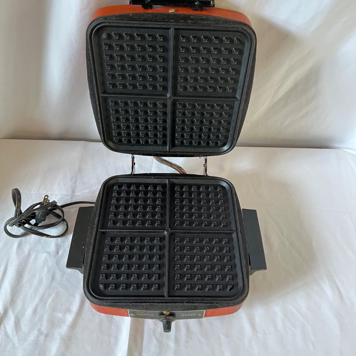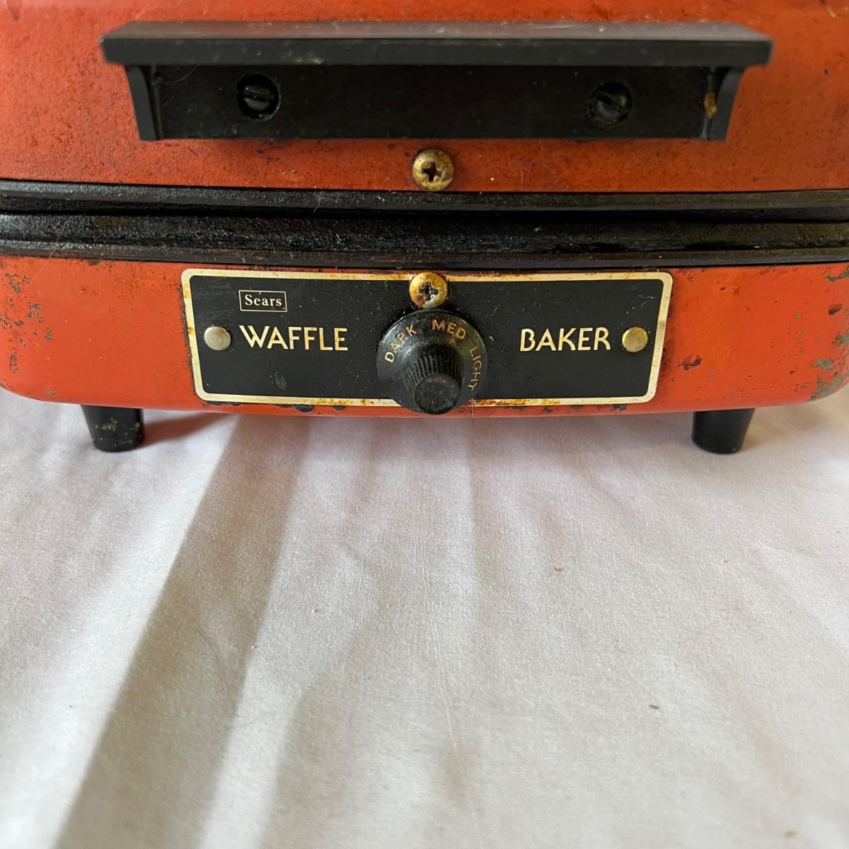 Non-stick electric crepe maker measuring 9” D. ToastMaster round Belgian Waffler measures 8” D and Sears Waffle Baker is 9” square. All items powered on when plugged in. Shipping available.