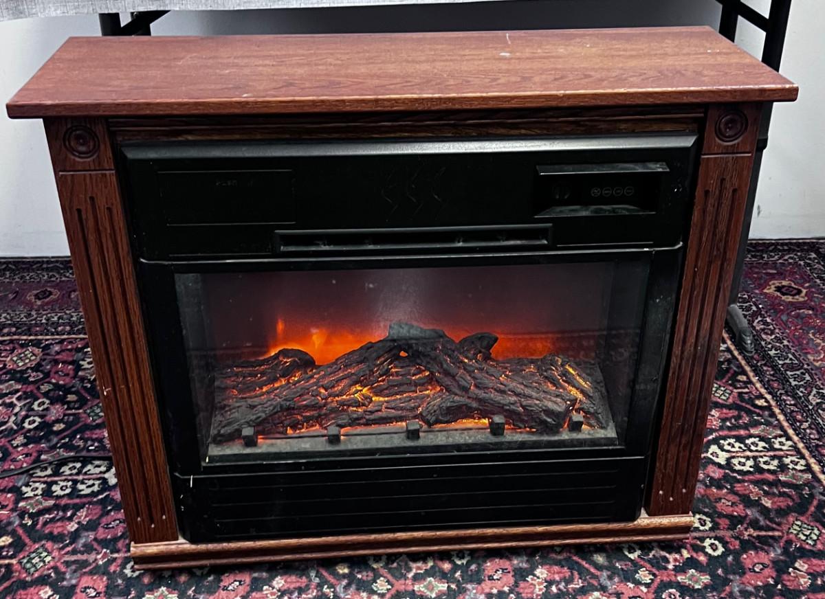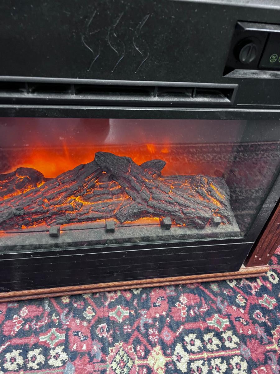 Electric Fireplace in Cherry Stained Oak Cabinet