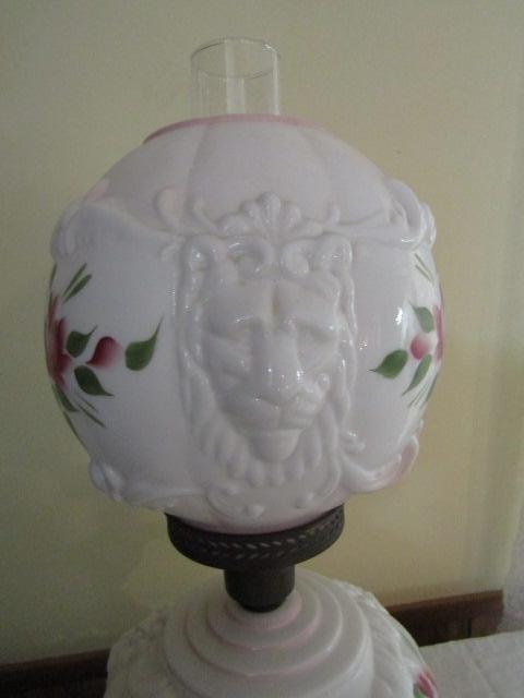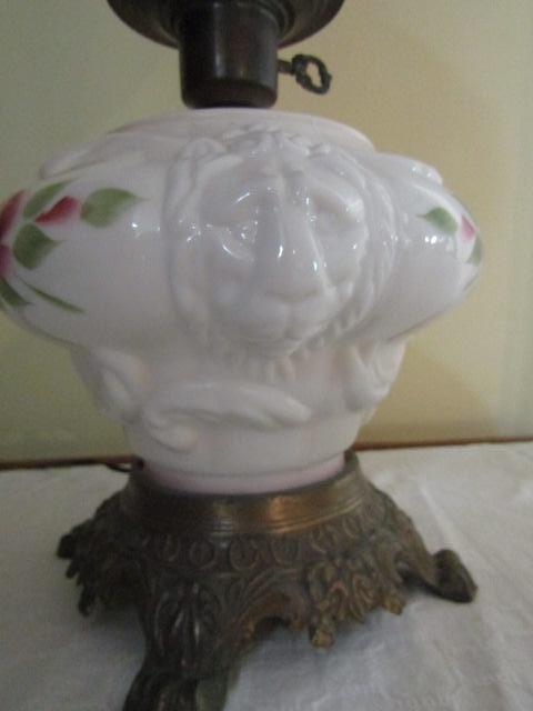 Electric Handpainted Gone With the Wind Lamp- Floral and Lion Face. Approximately 21 inches high.