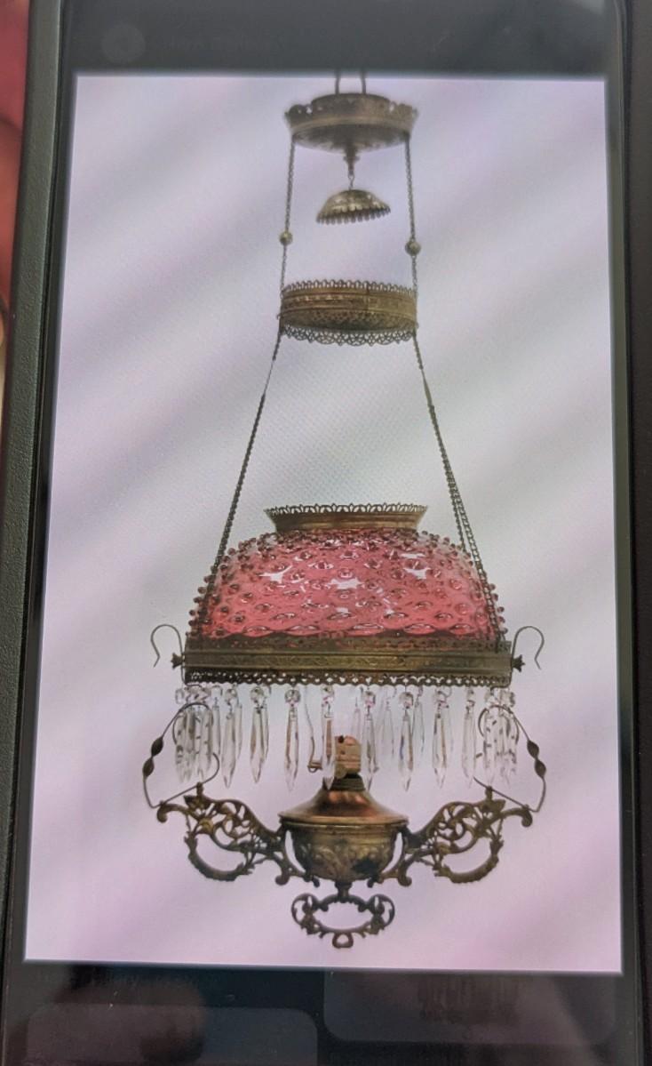 Electric Hanging Lamp With Cranberry Lampshade (G)