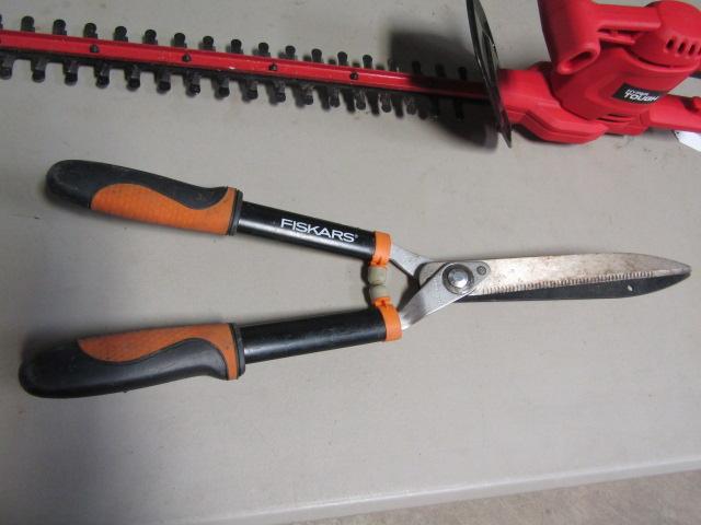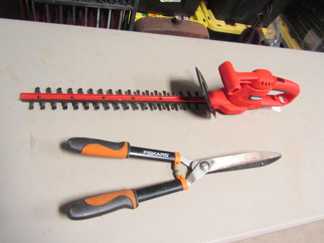 Electric Hedge Trimmer and Fiskers Manual Hedge Cutter