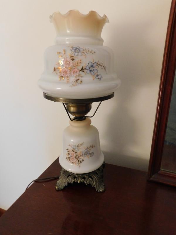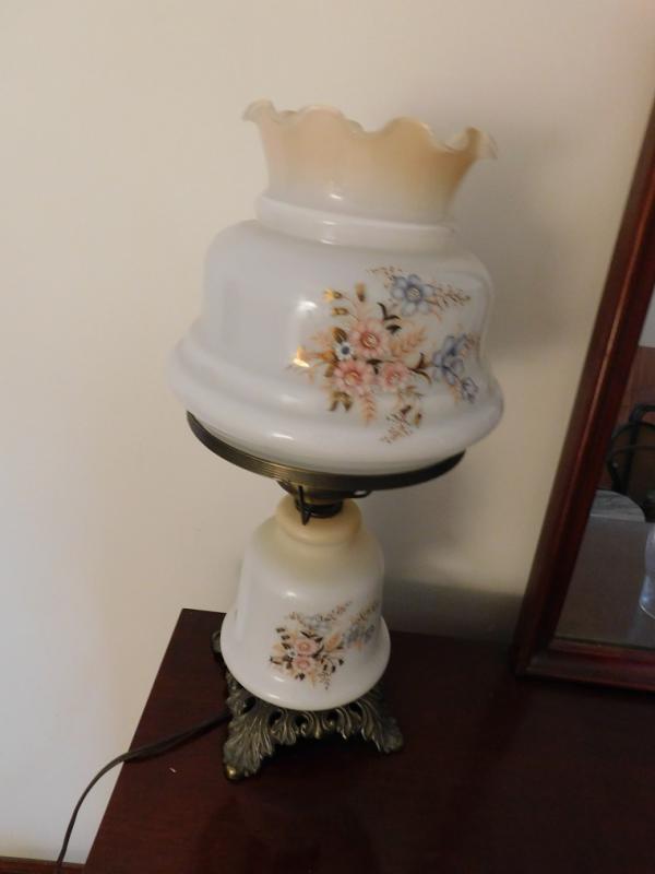 Electric Hurricane Lamp with Painted Shade. Very nice item