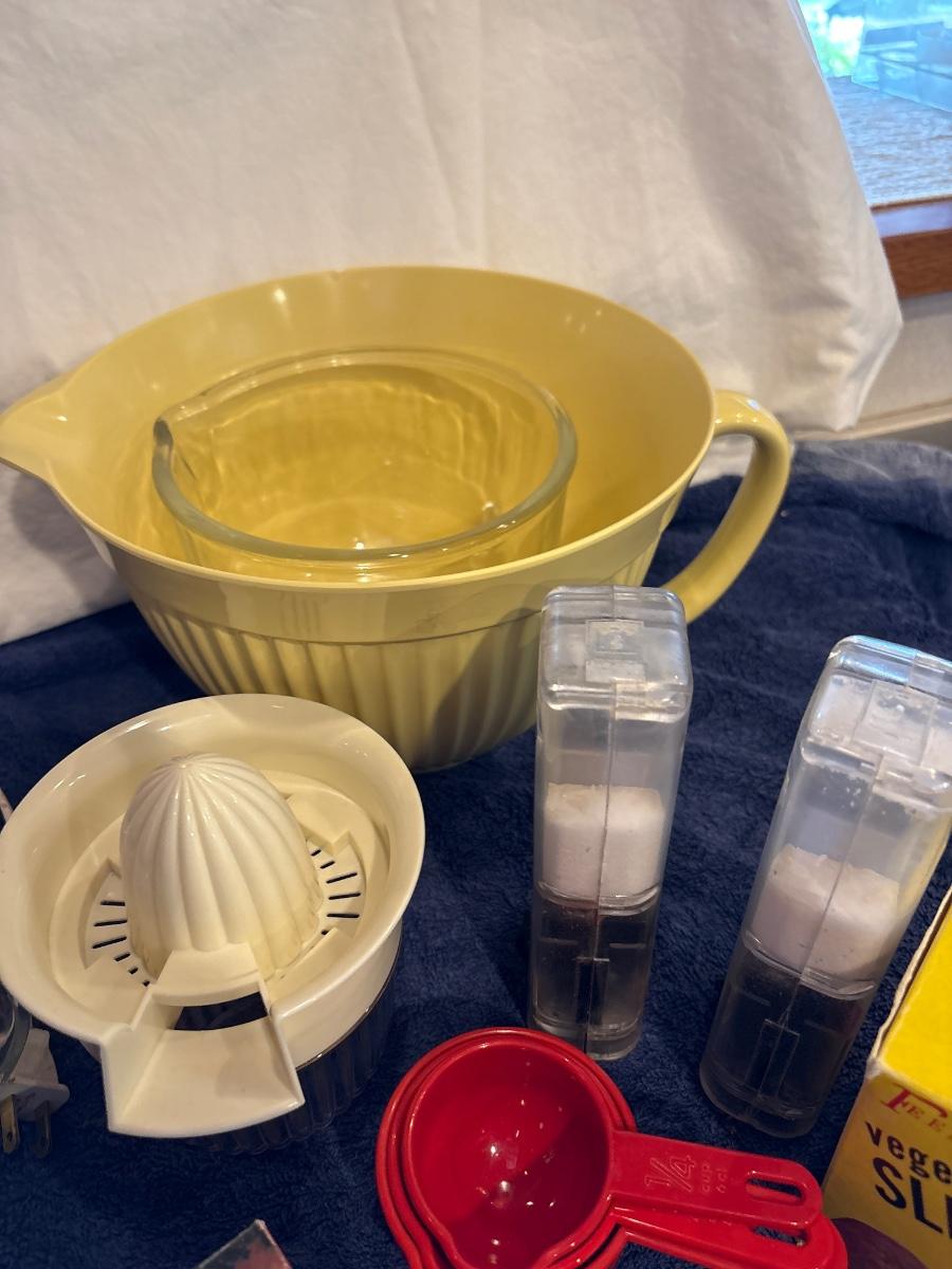 Yellow Melmac mixing bowl has a small chip. See pictures