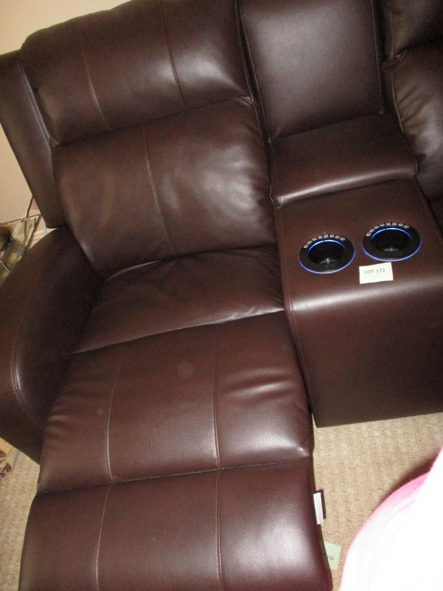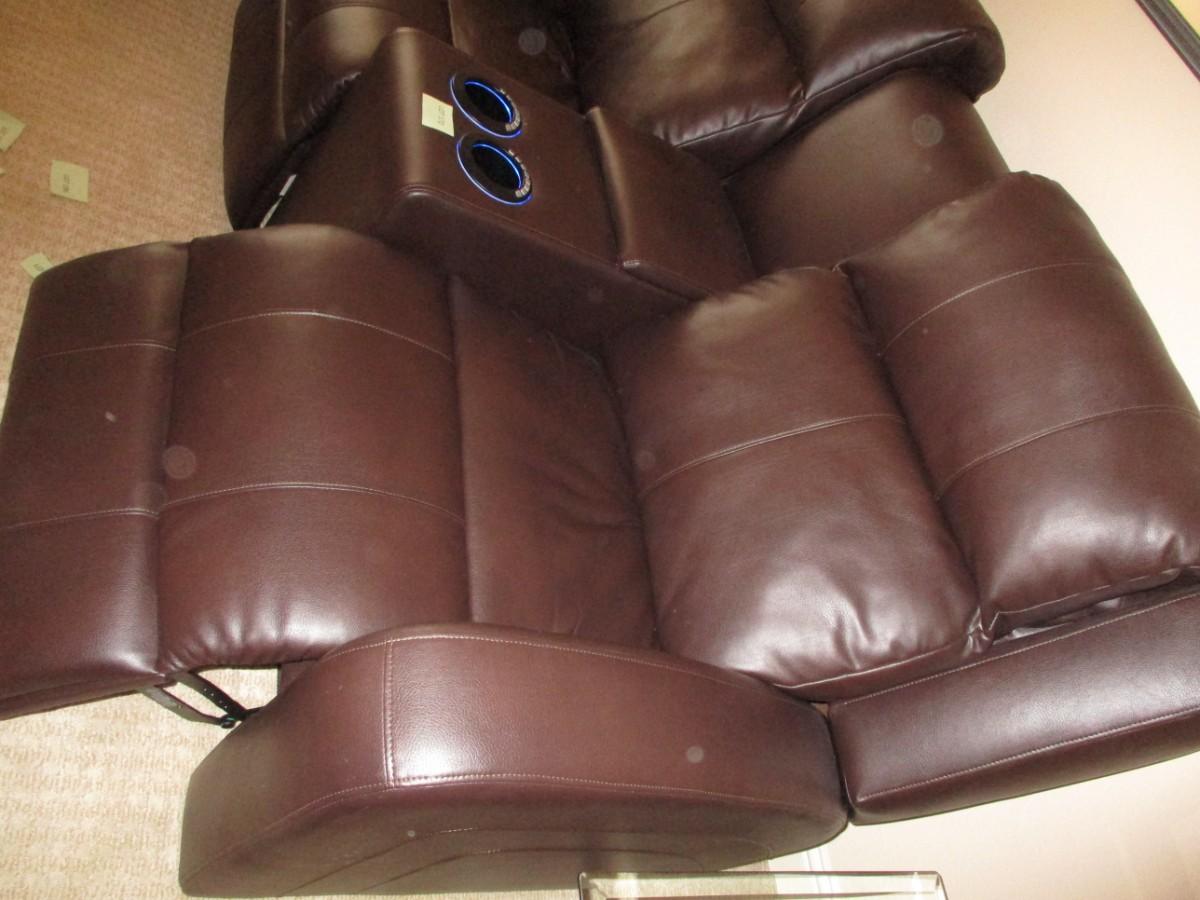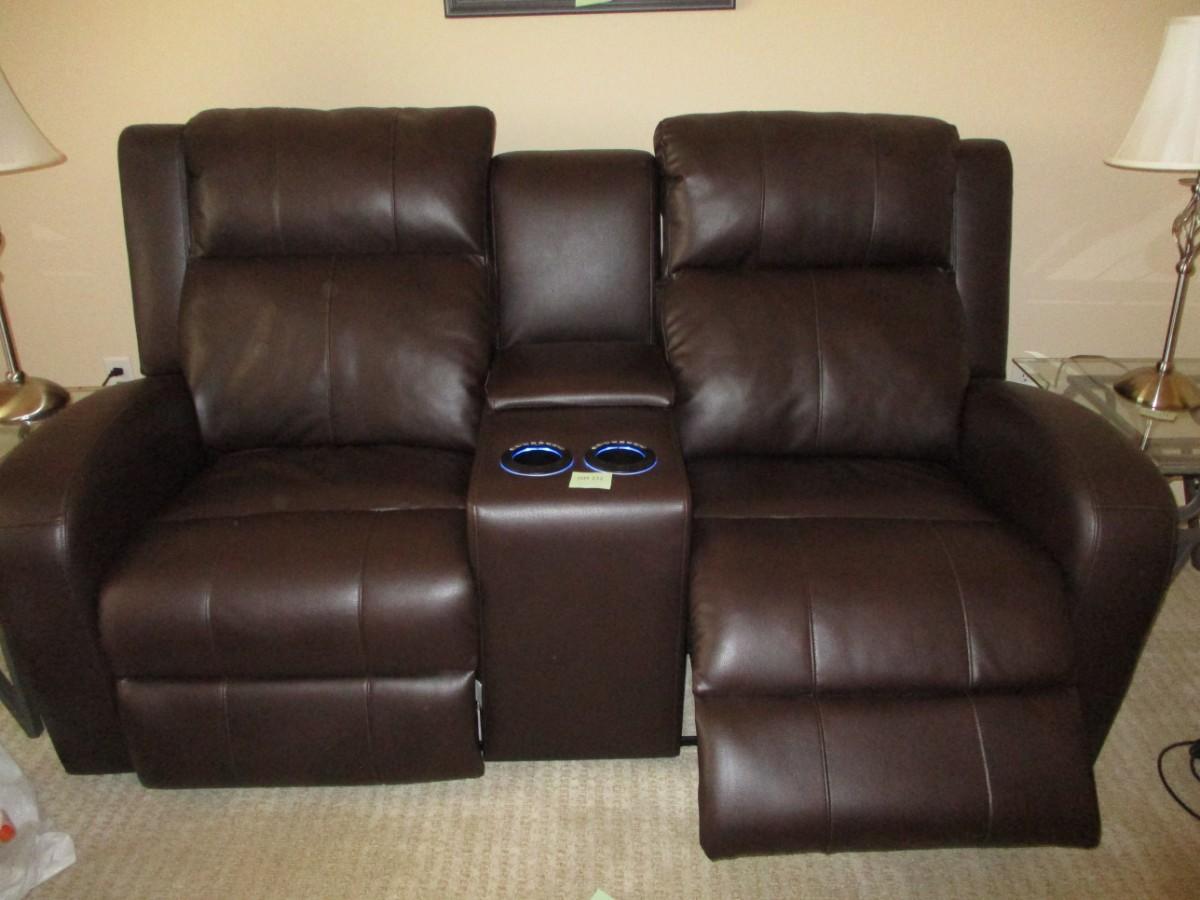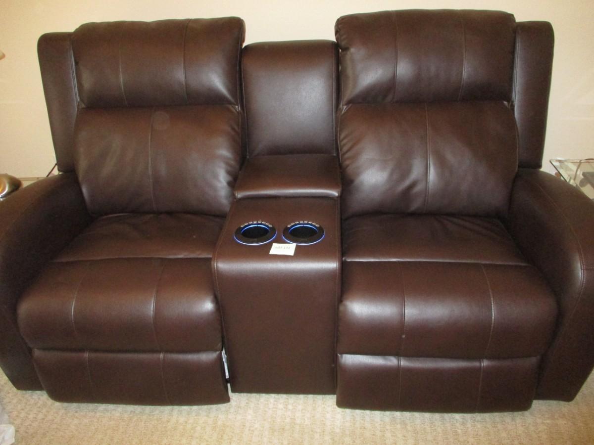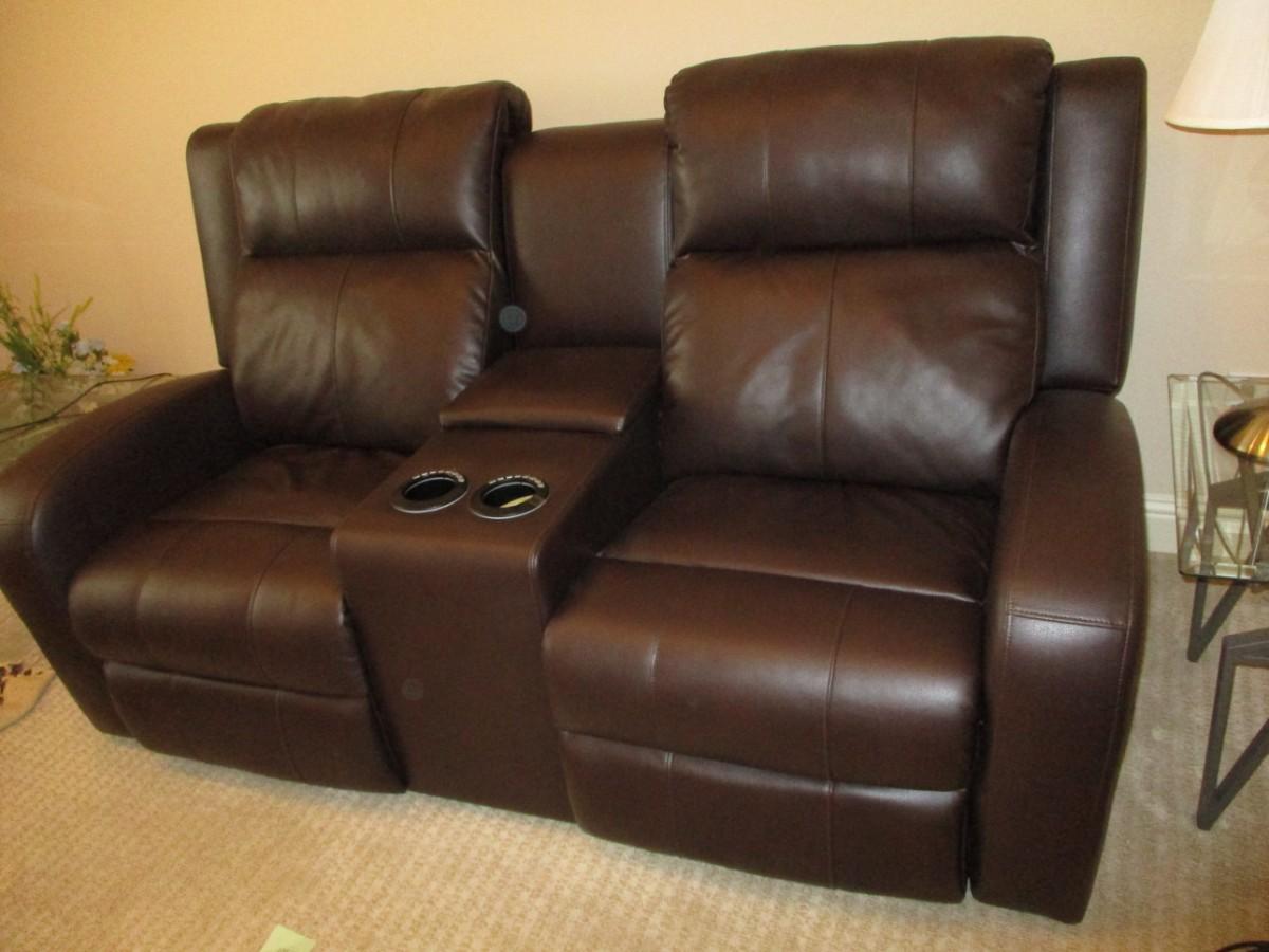 Faux leather theater seating with lighted controll console. Excellent condition.