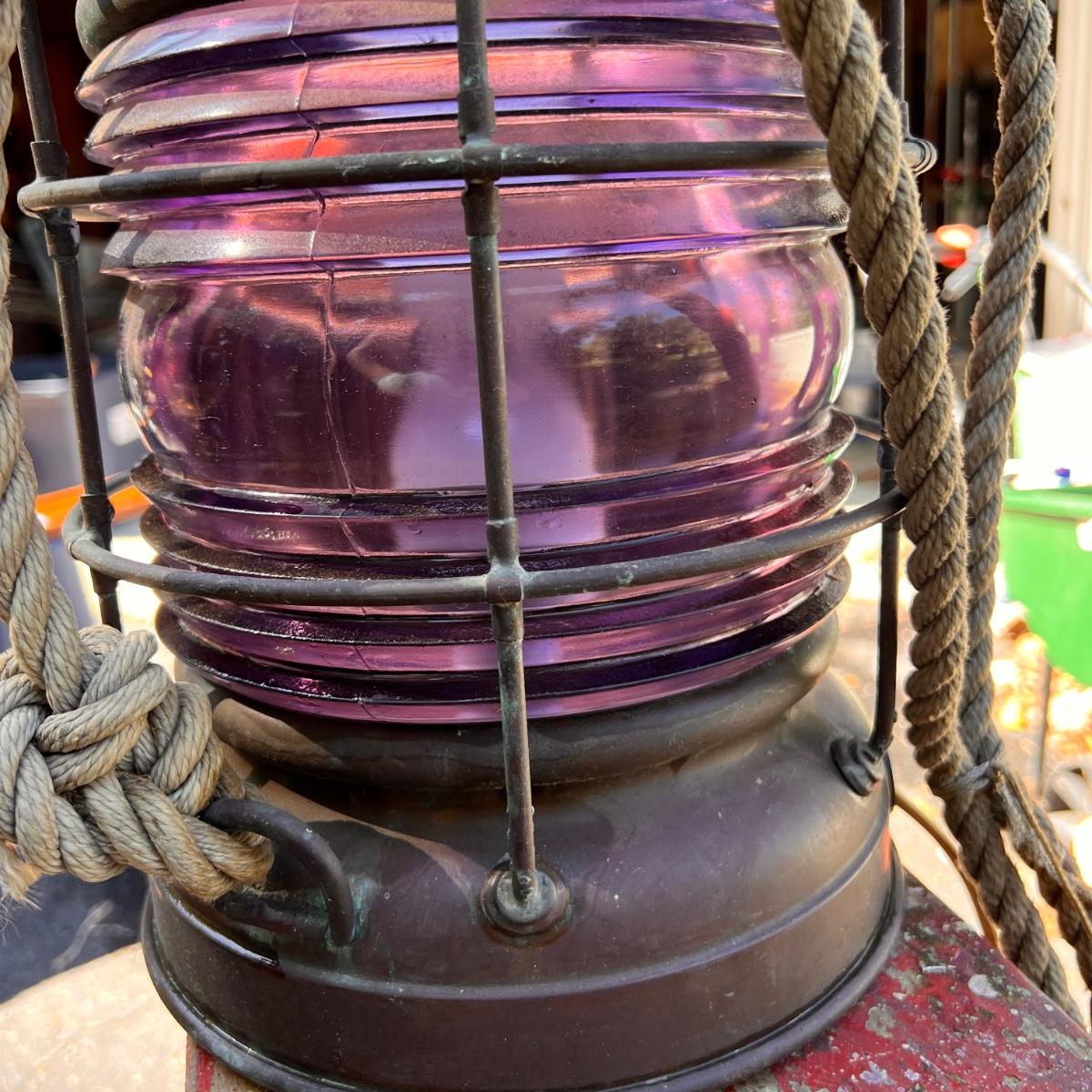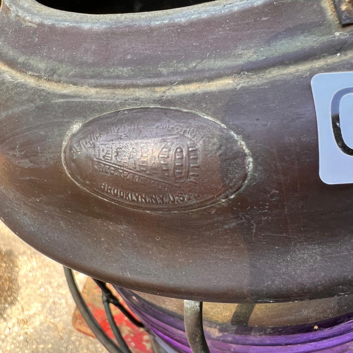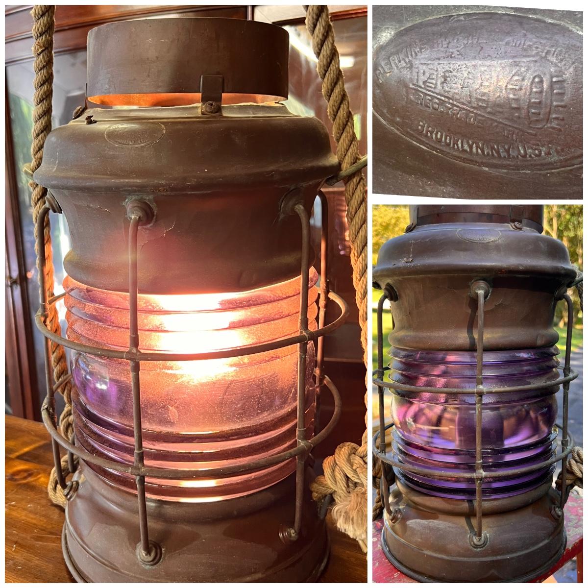 Large Antique Perko Electrified Nautical Ships Lantern Purple Glass