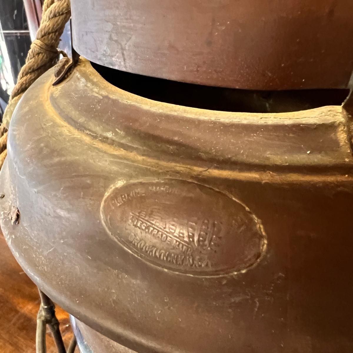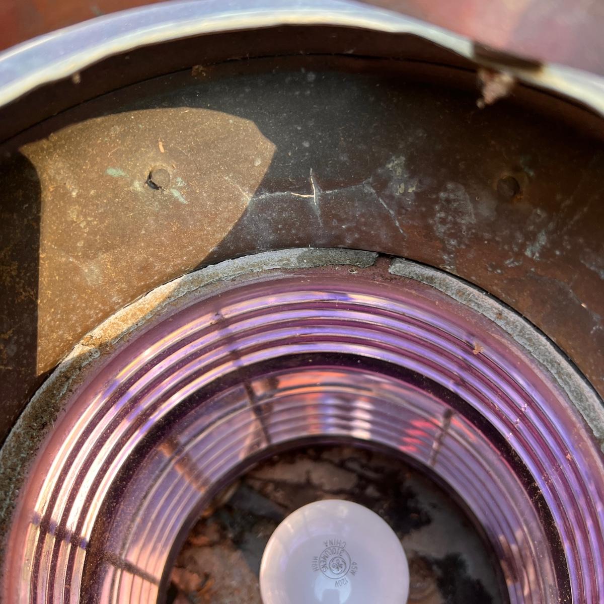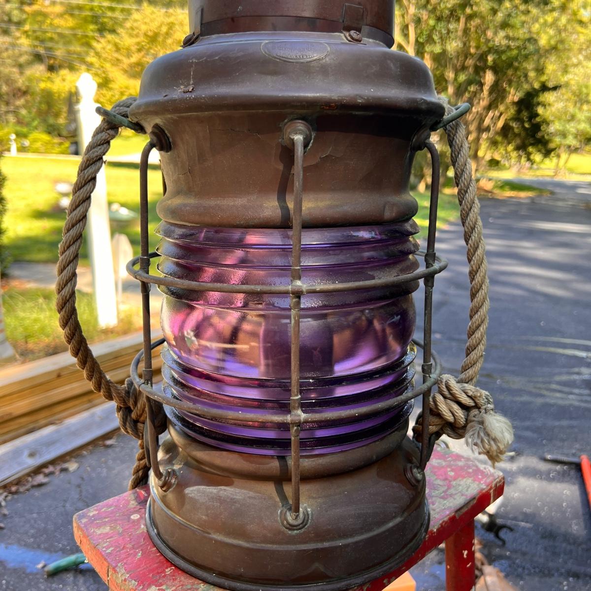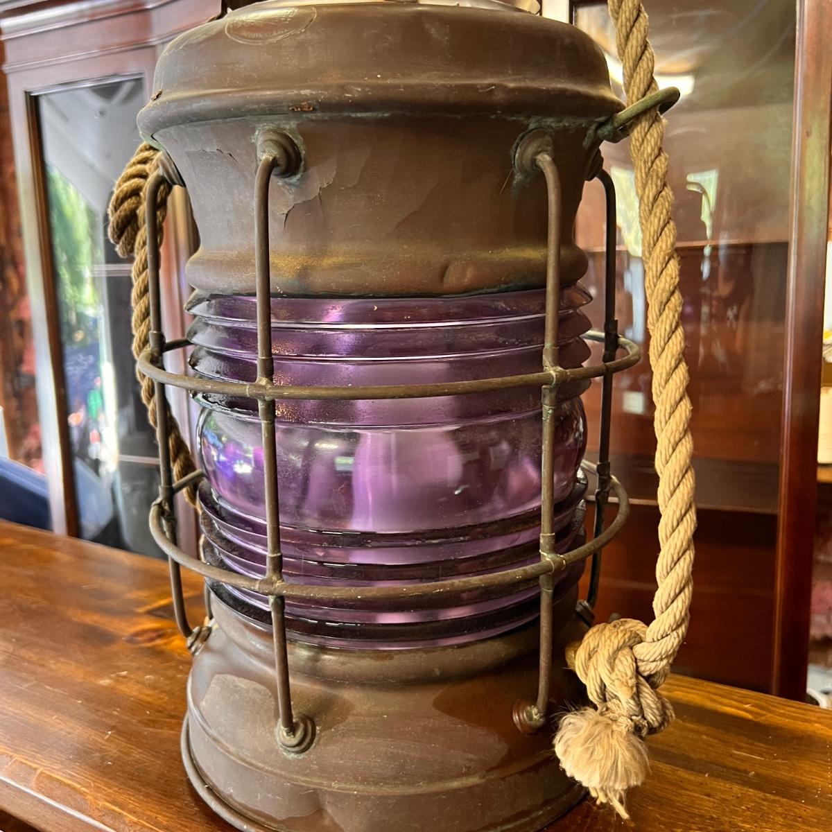 Large Antique Perko Electrified Nautical Ships Lantern Purple Glass