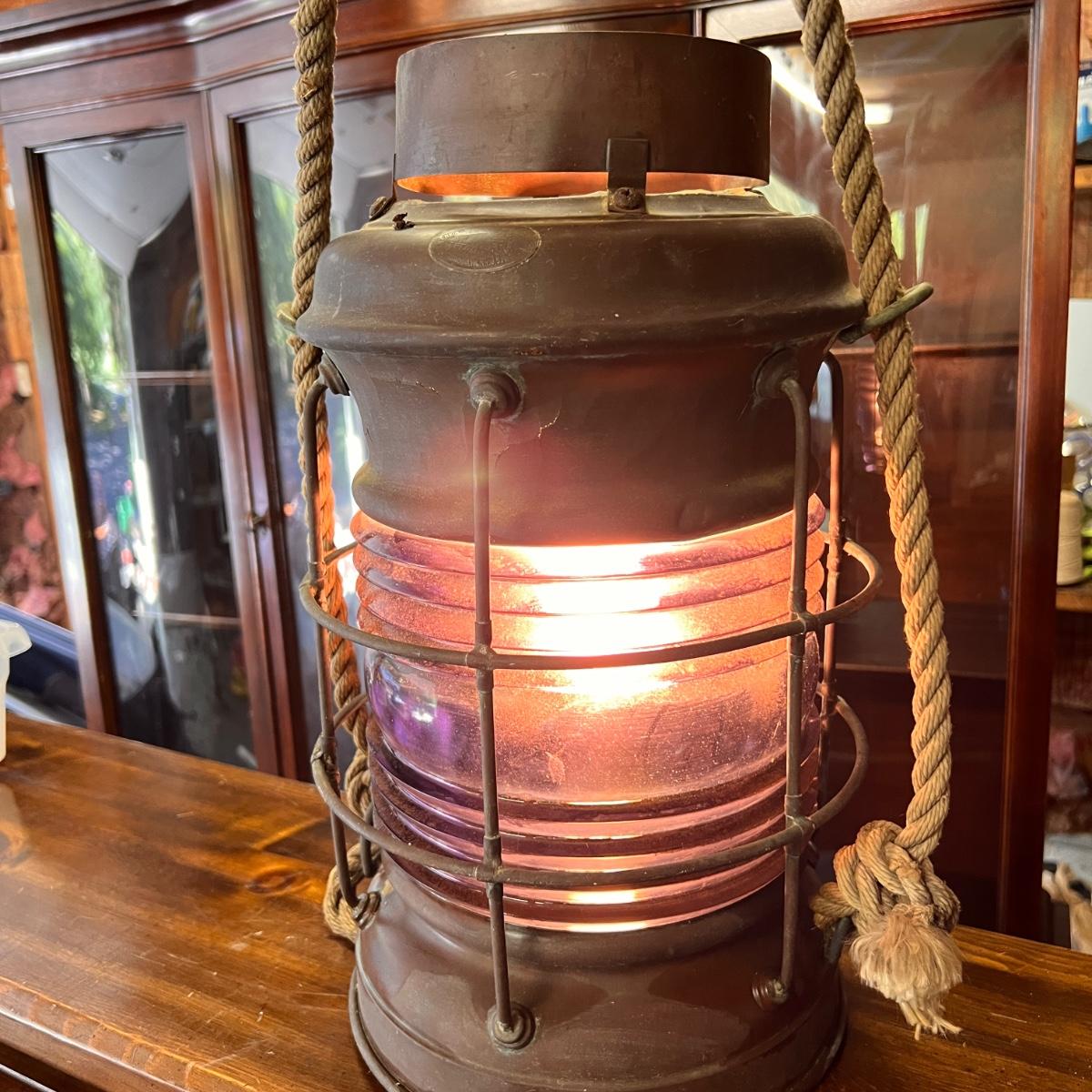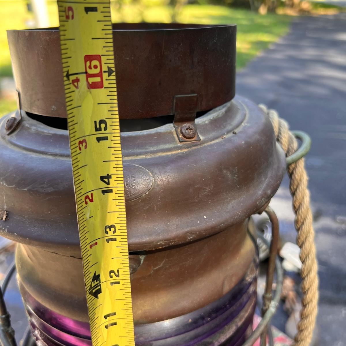 16.5" electrified ships lantern with purple glass made by Perko of Brooklyn NY. See pics for condition. Works!