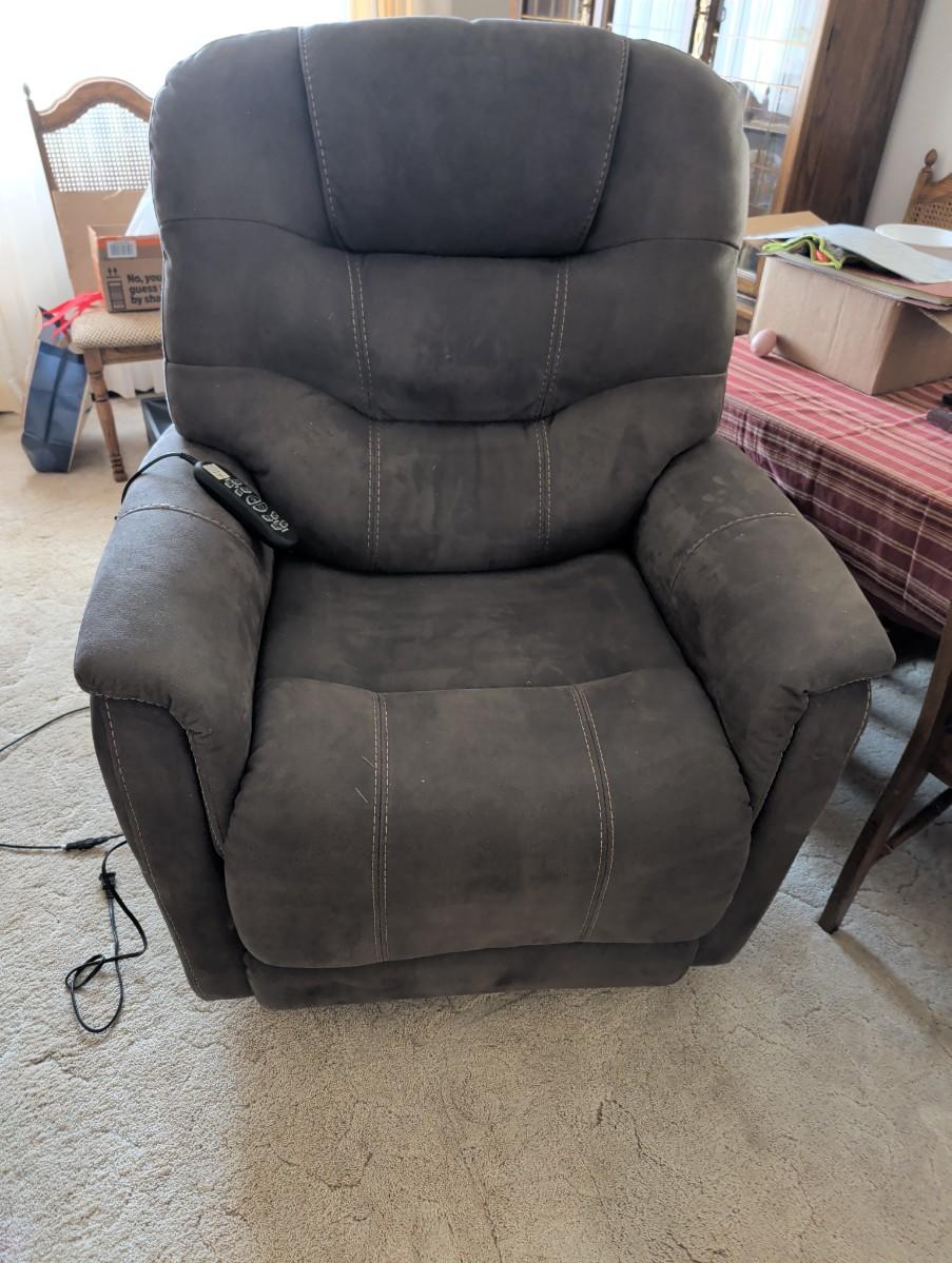 Electric Power recliner only a couple years old. Works great! Bought at American Furniture. Micro-Suede material.