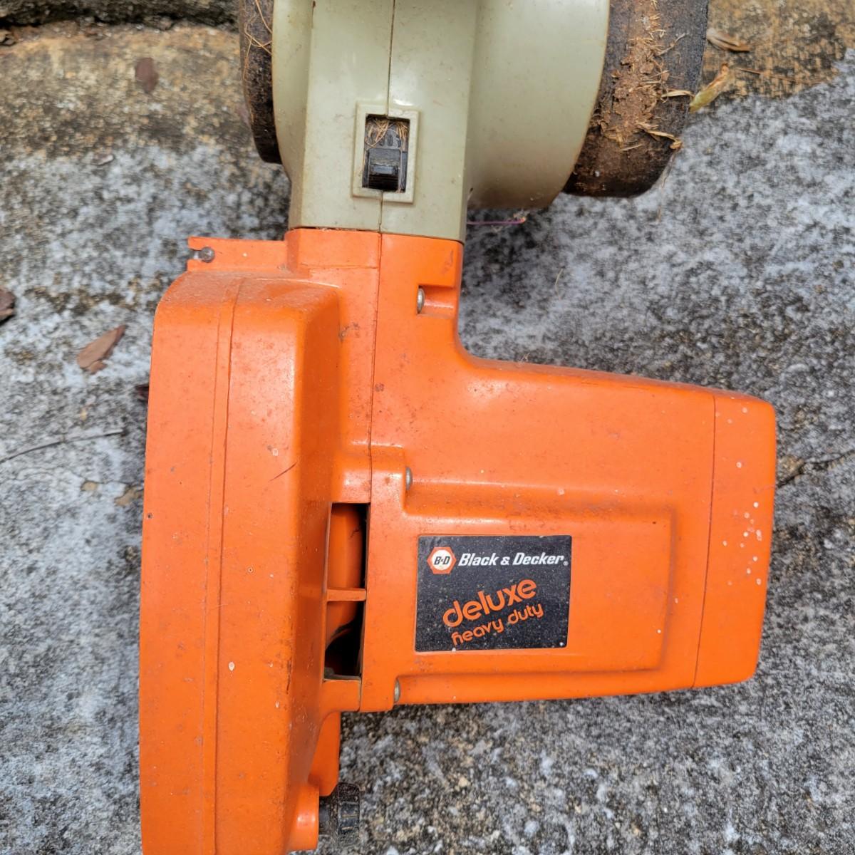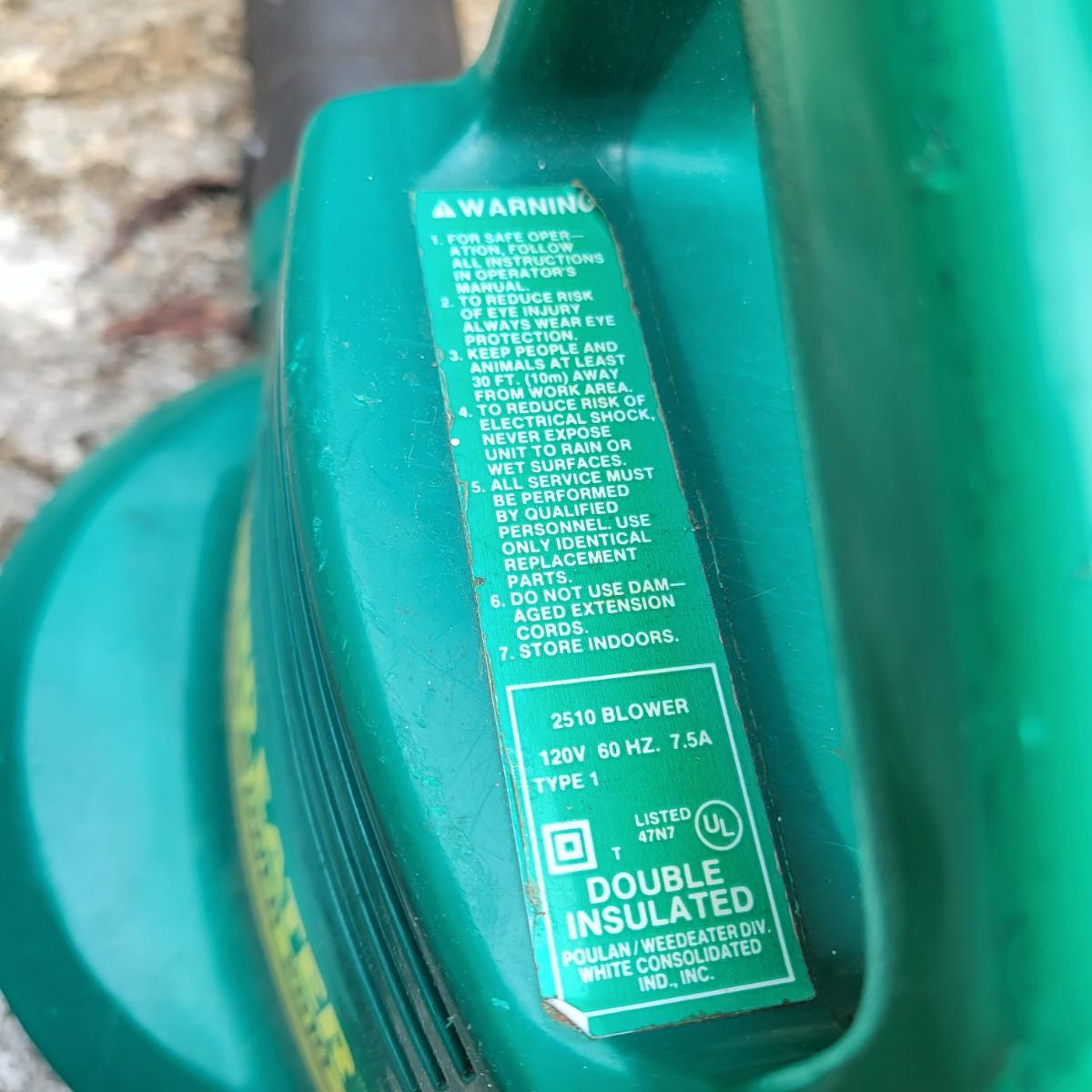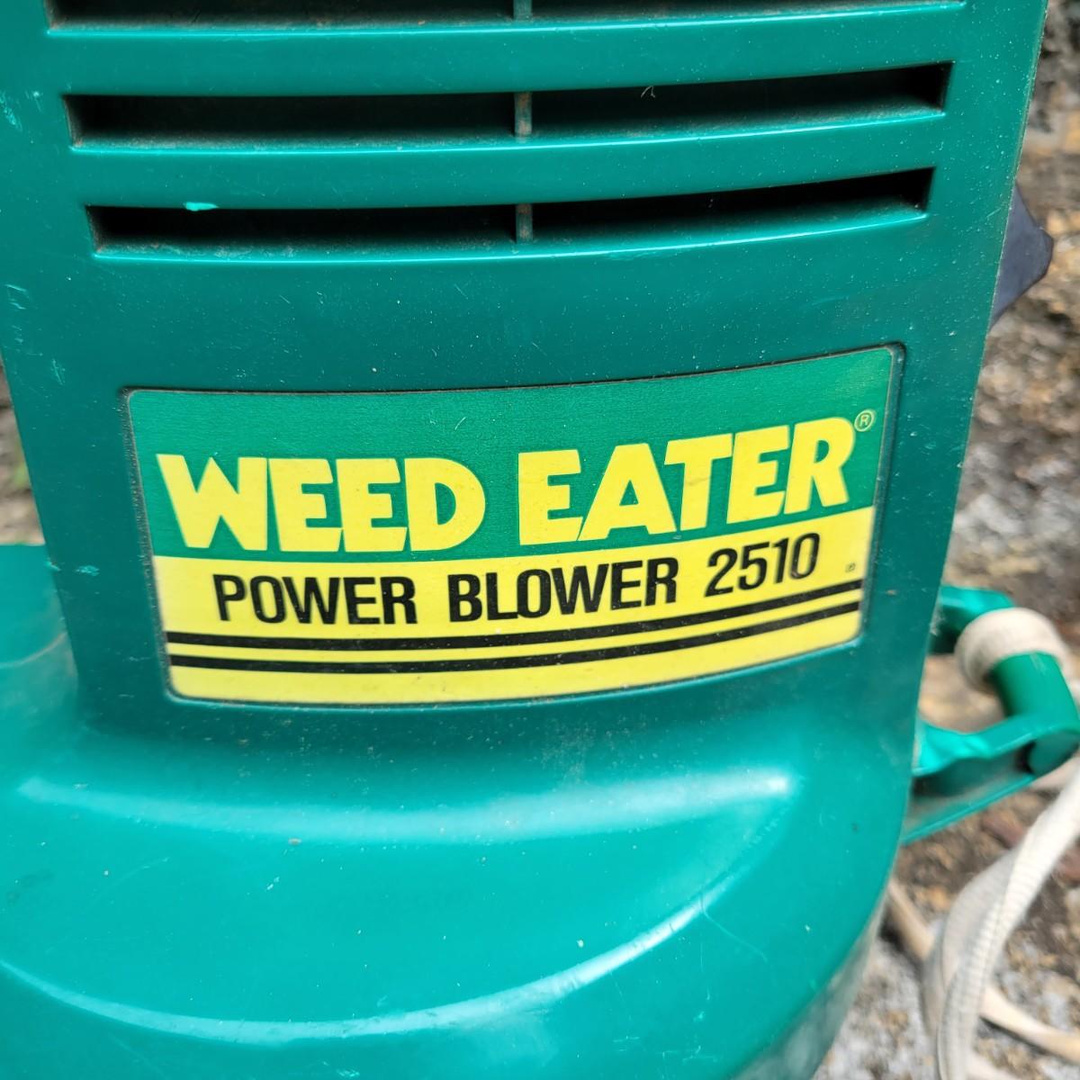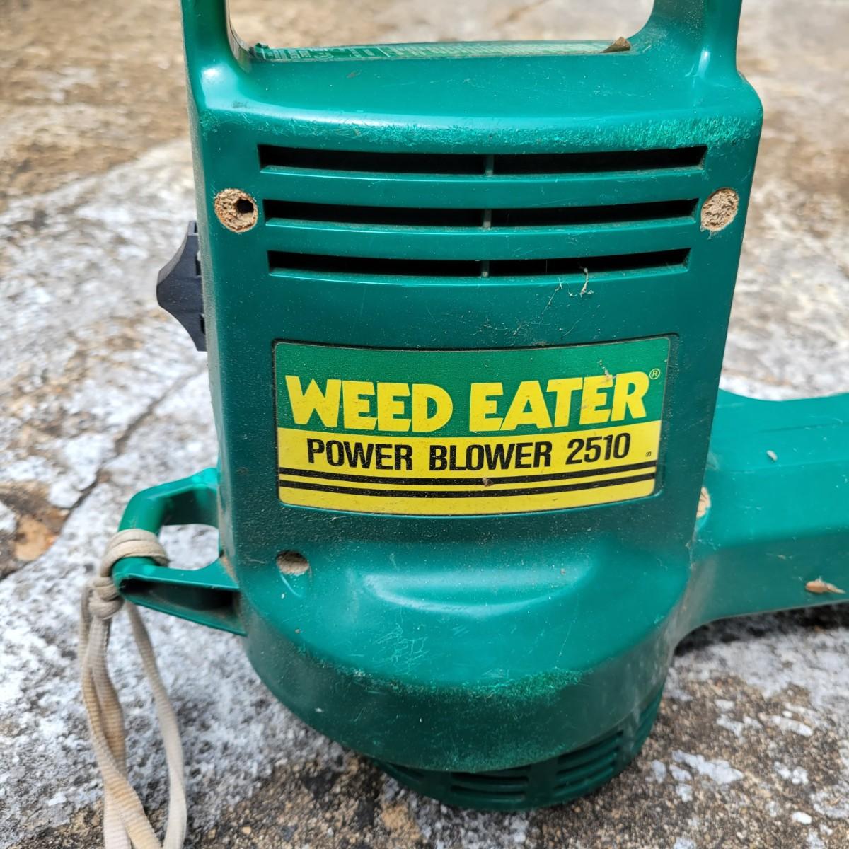A collection of electric yard tools that all powered on when plugged in. Included is a Ryobi string trimmer, a Weed Eater blower and a B&D edger. Local pickup only