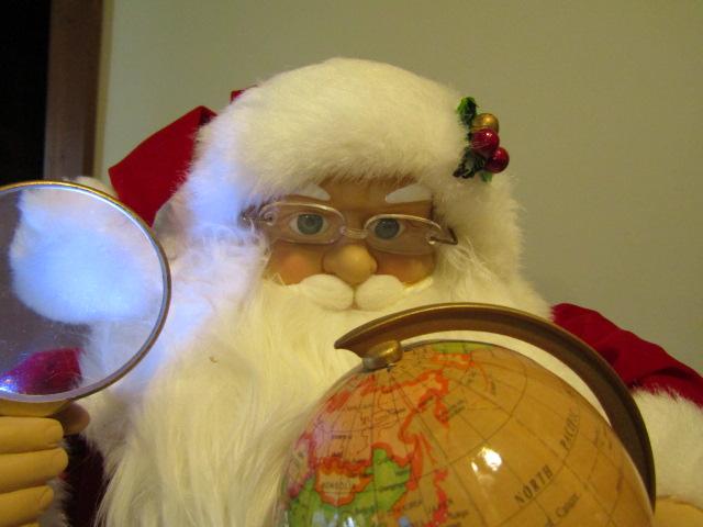 Electric Santa- Plays Jingle Bells. He turns and the magnifying glass lights up and moves.