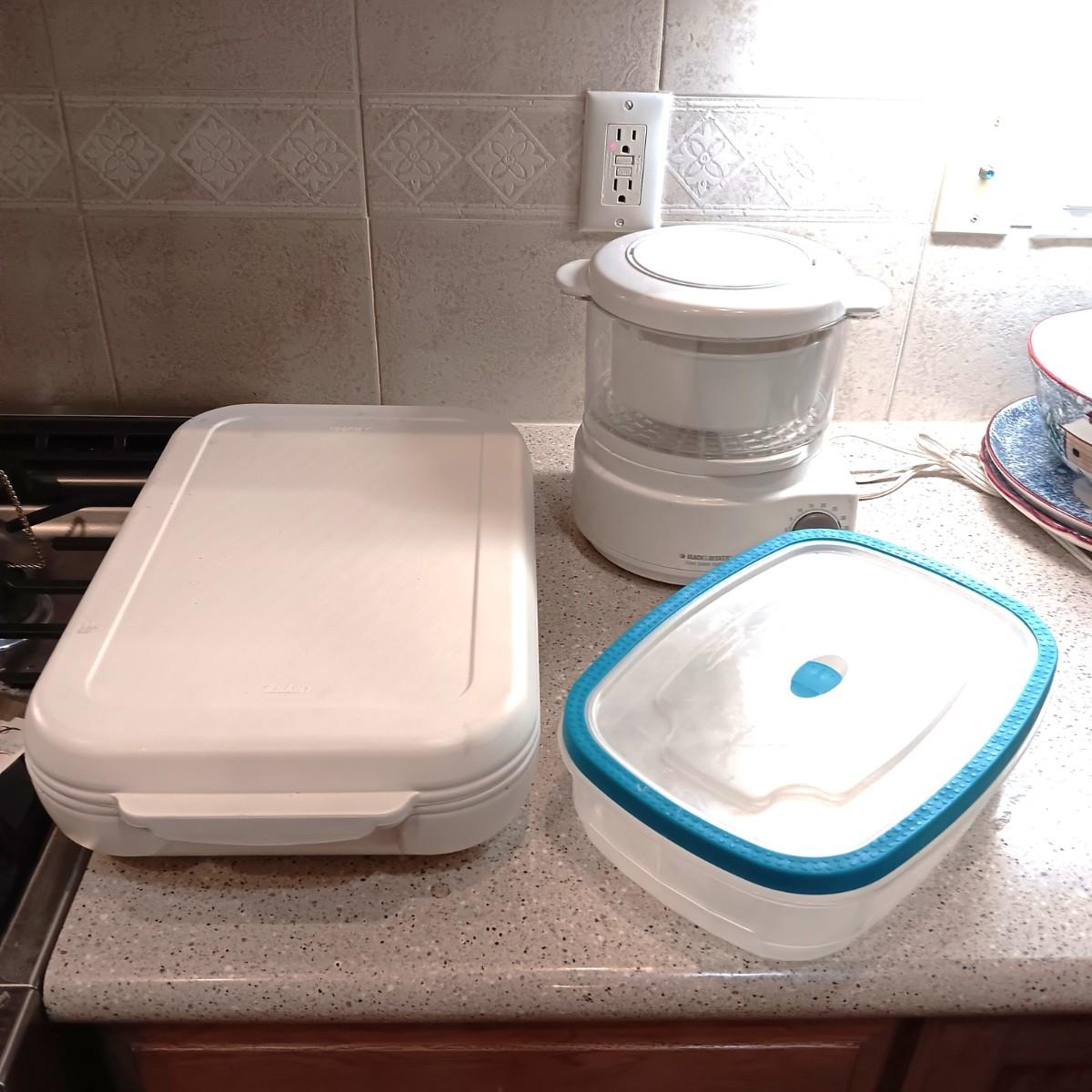 ELECTRIC STEAMER, ALADDIN CASSEROLE WARMER AND STORAGE CONTAINER