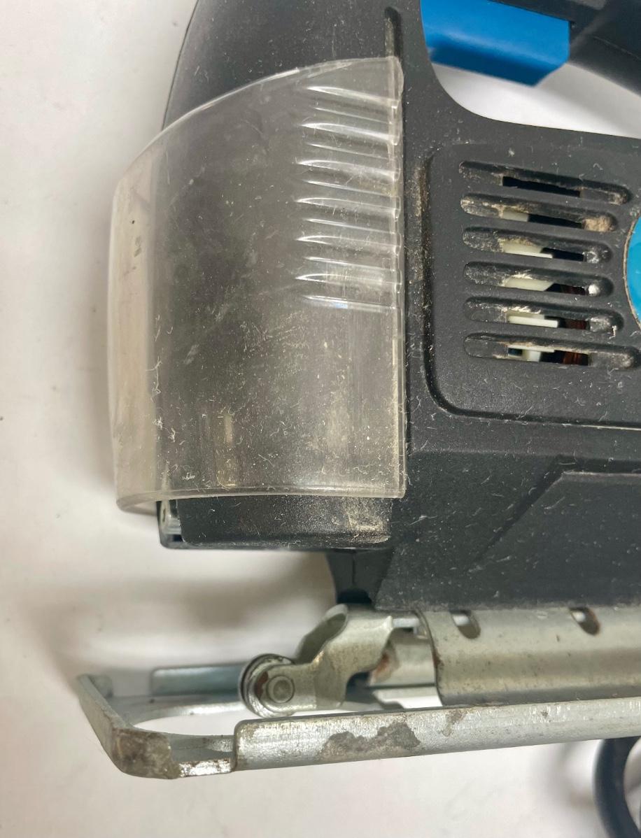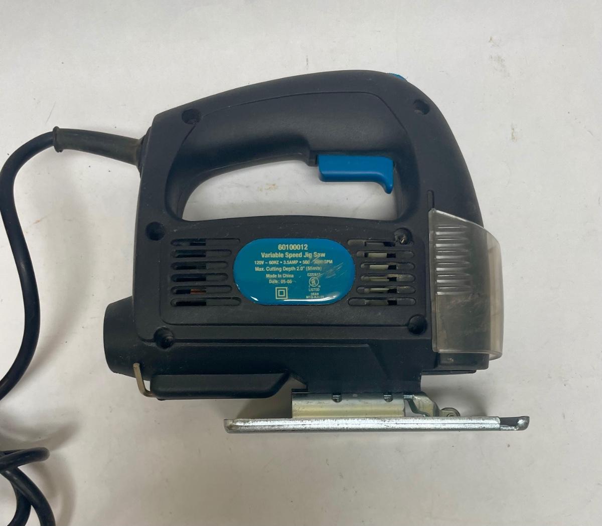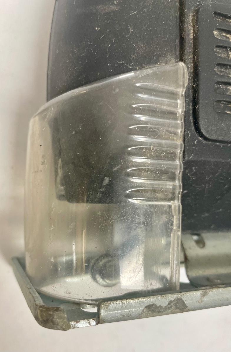 Has sliding clear plastic dust shield. Model 60100012. Depth of cut is 2". Has onboard storage of the blade tightening Allen wrench. Tested, runs strong.