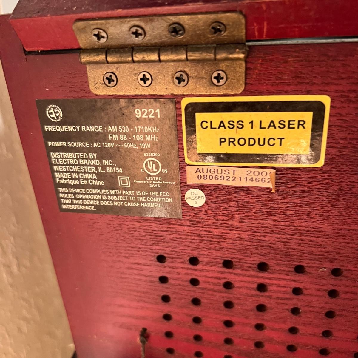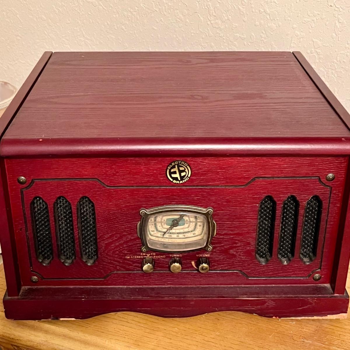 Electro Brand Model 9221 In working order. Red wood finish. Meas. 15.5”w x 23.5”d x 9”h.