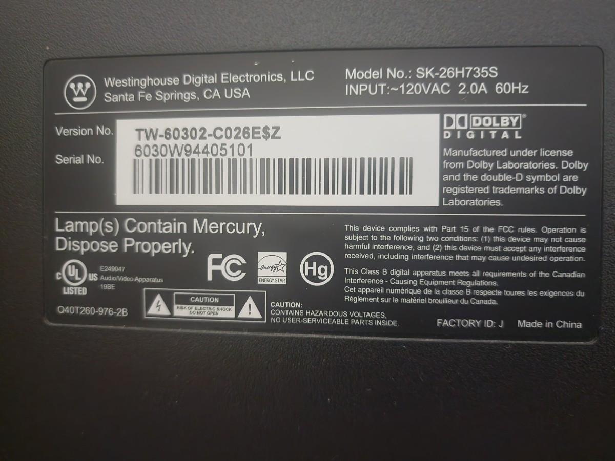 Westinghouse television w/remote 25"W x 16 1/2"H