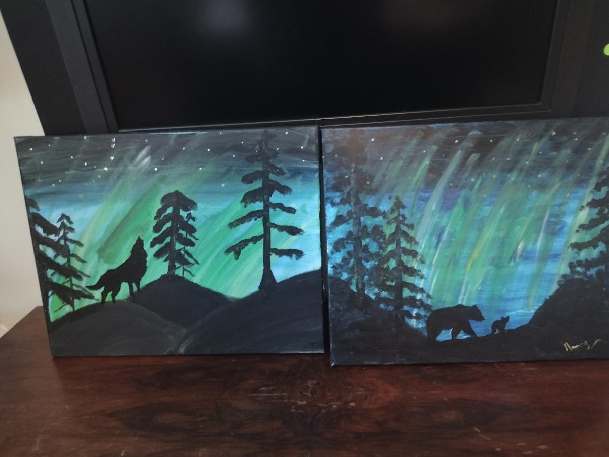 Both paintings were created in a similar style and color scheme. Being sold as a pair. Oil on canvas, both measure 20"x16".