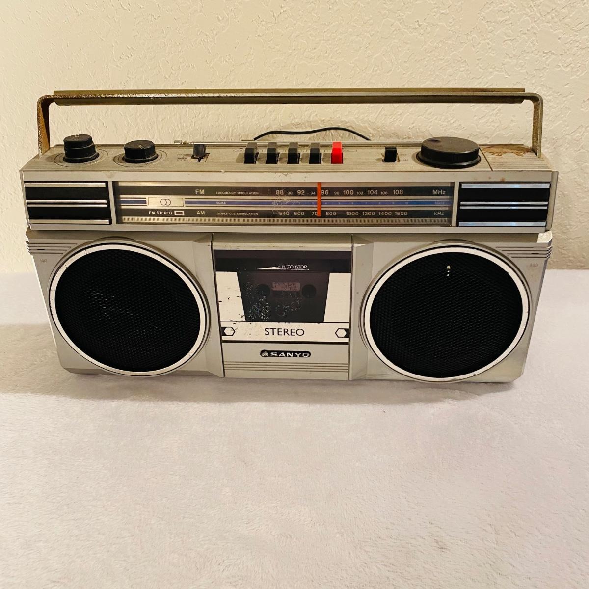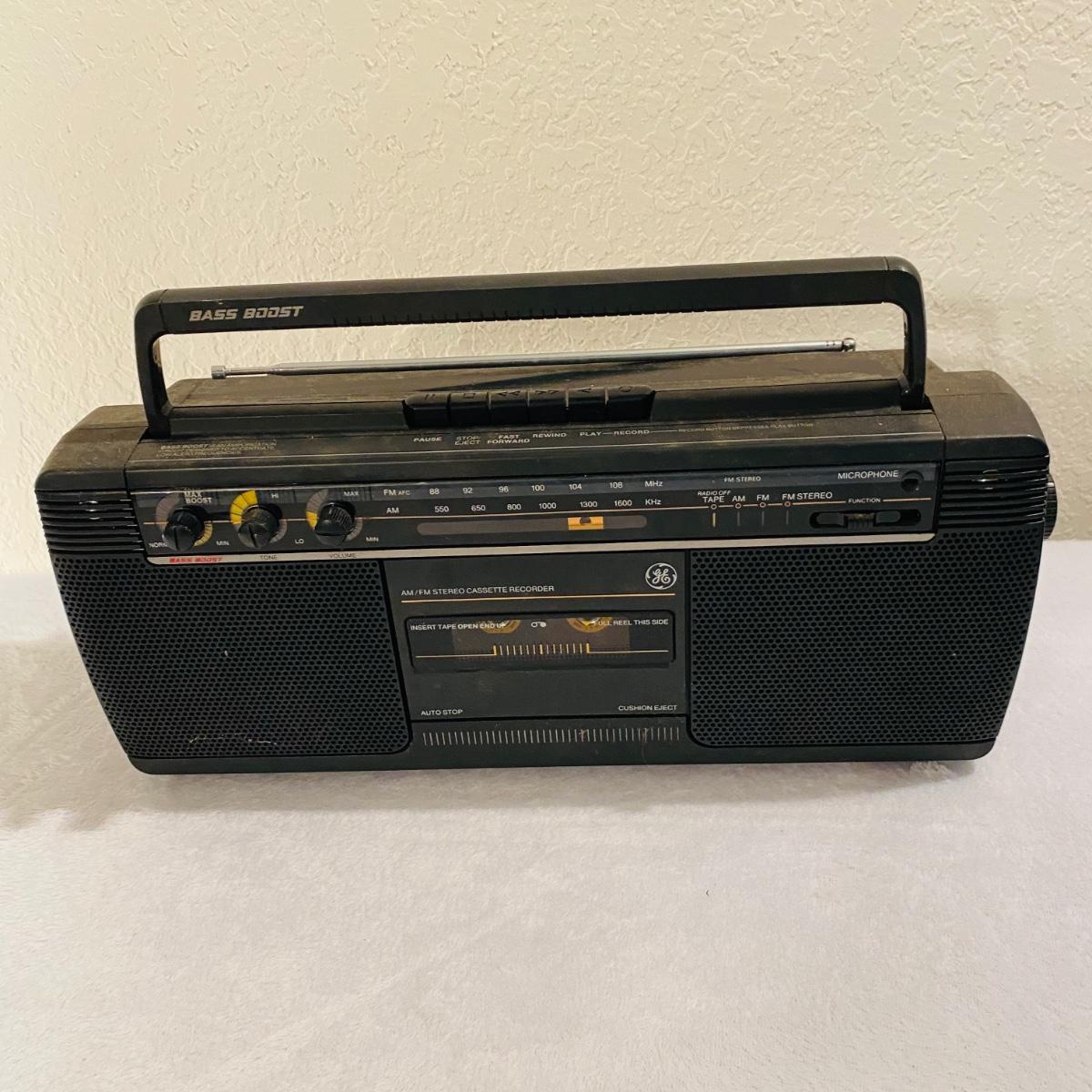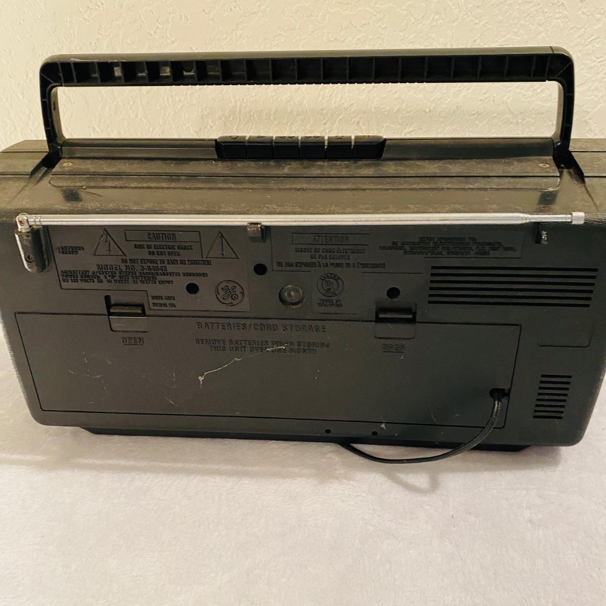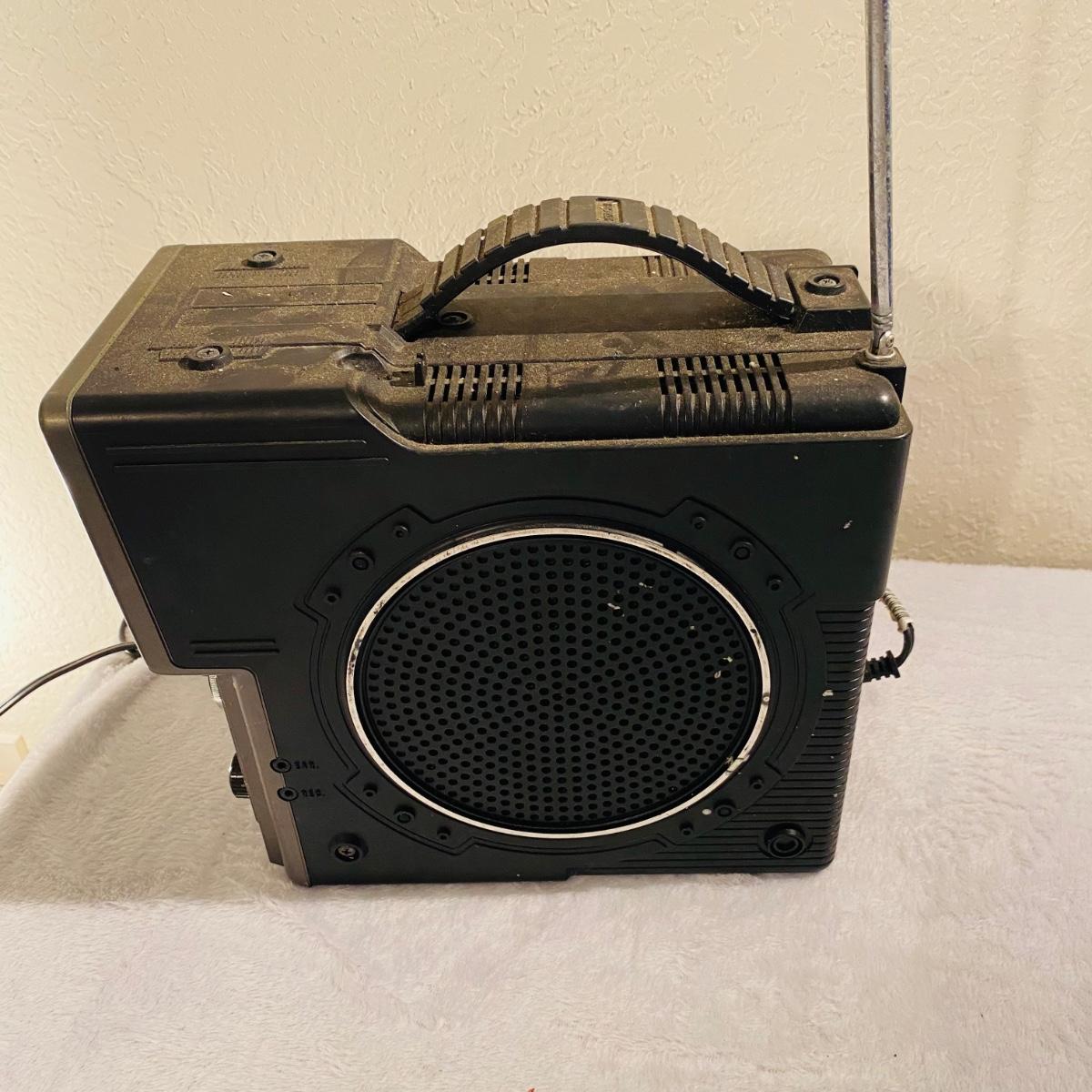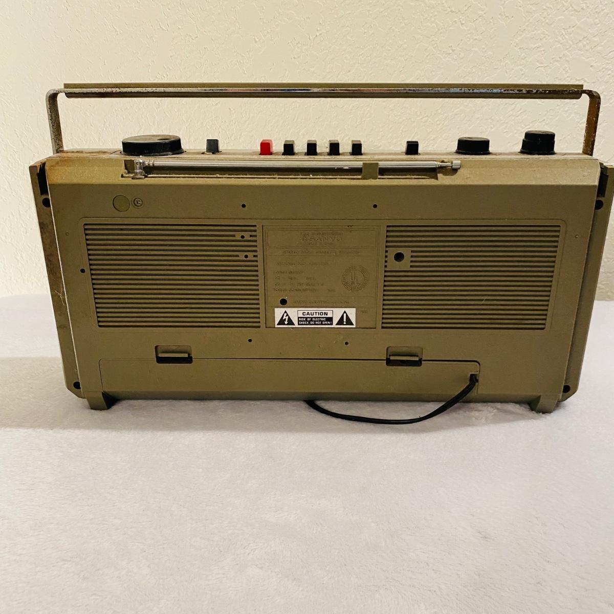 Lot includes National Maclord VHS video camera, Sharp Viewcam 8 video camera. Unable to verify if these are in working condition. Also includes two portable music machines (boom boxes ) that power on when plugged in. Also includes Hitachi portable television that powers on when plugged in.