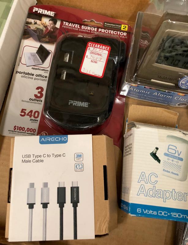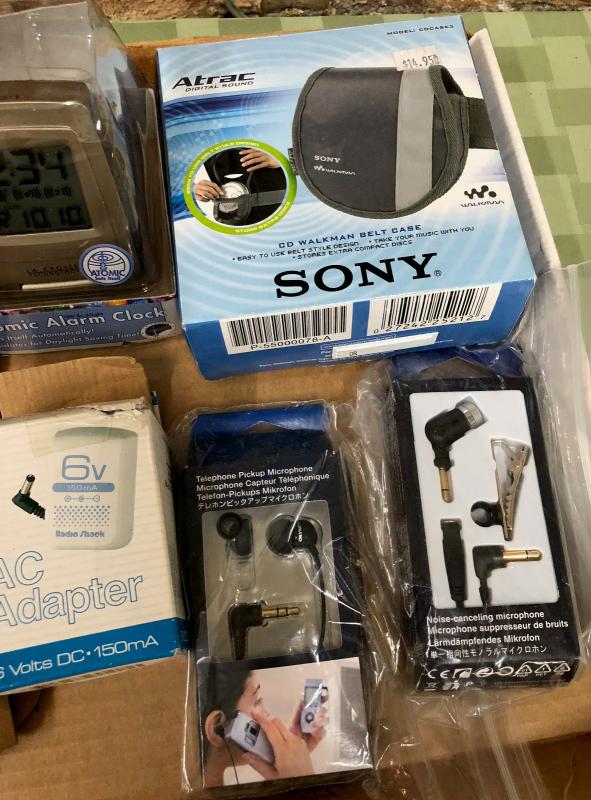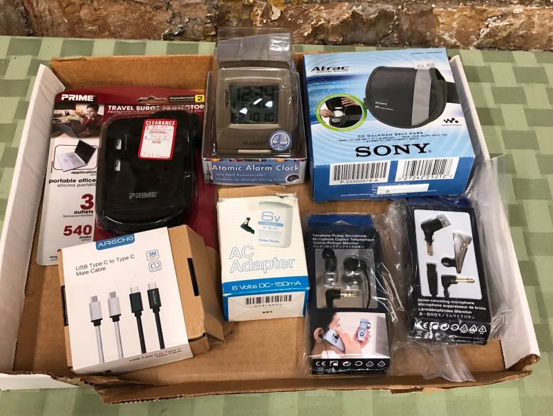Here is a miscellaneous electronics lot with clock and ear buds...new condition...