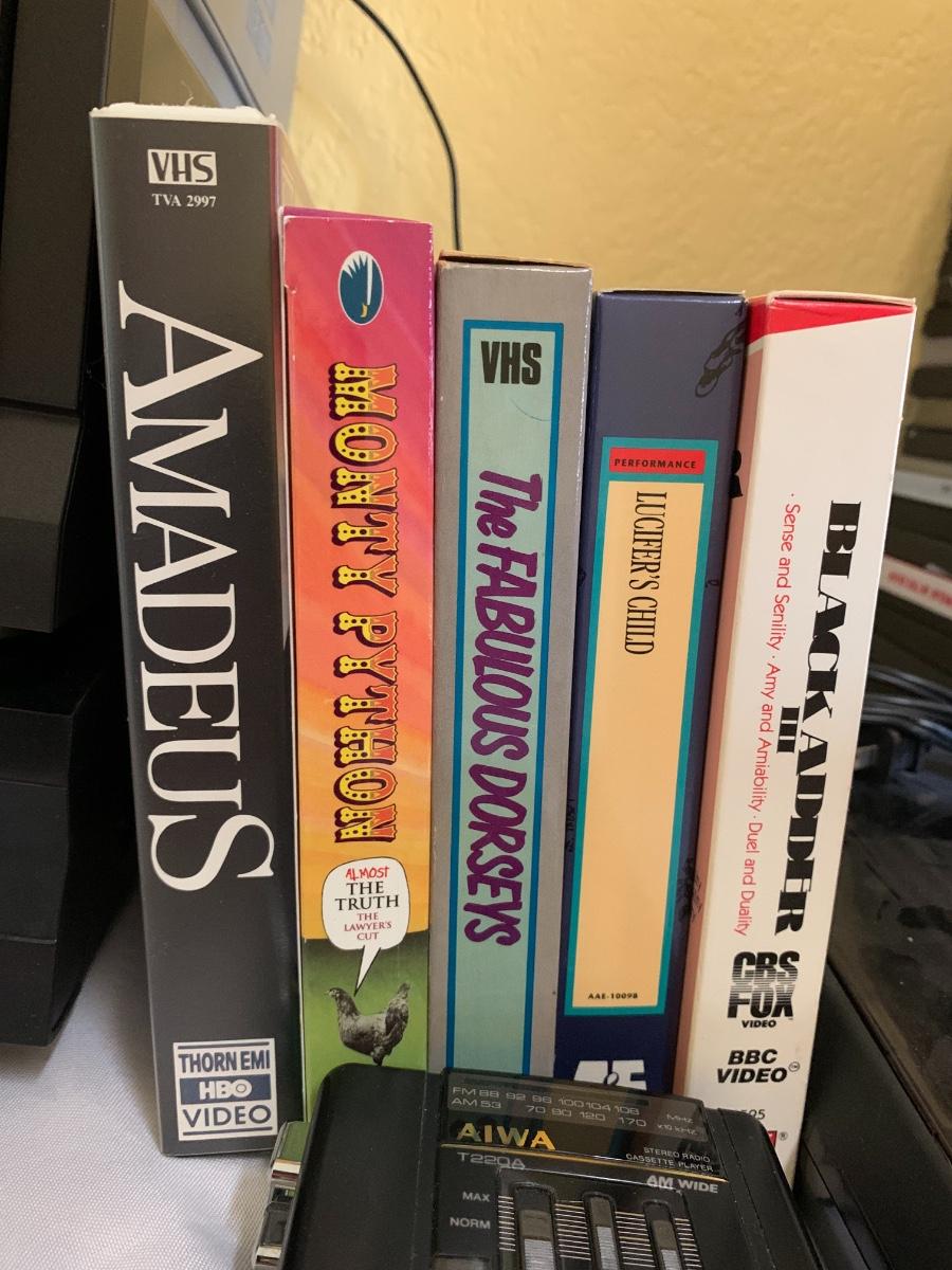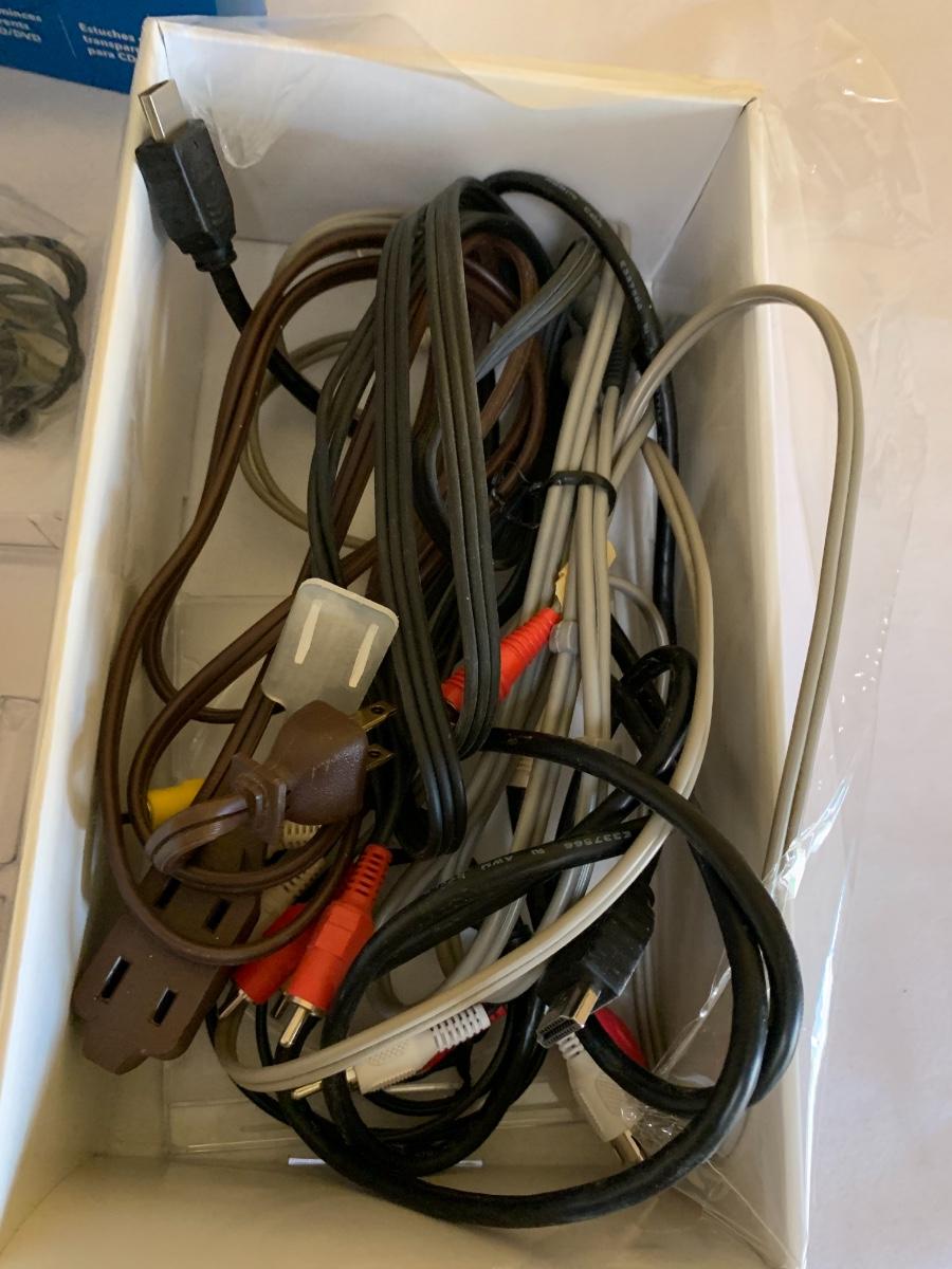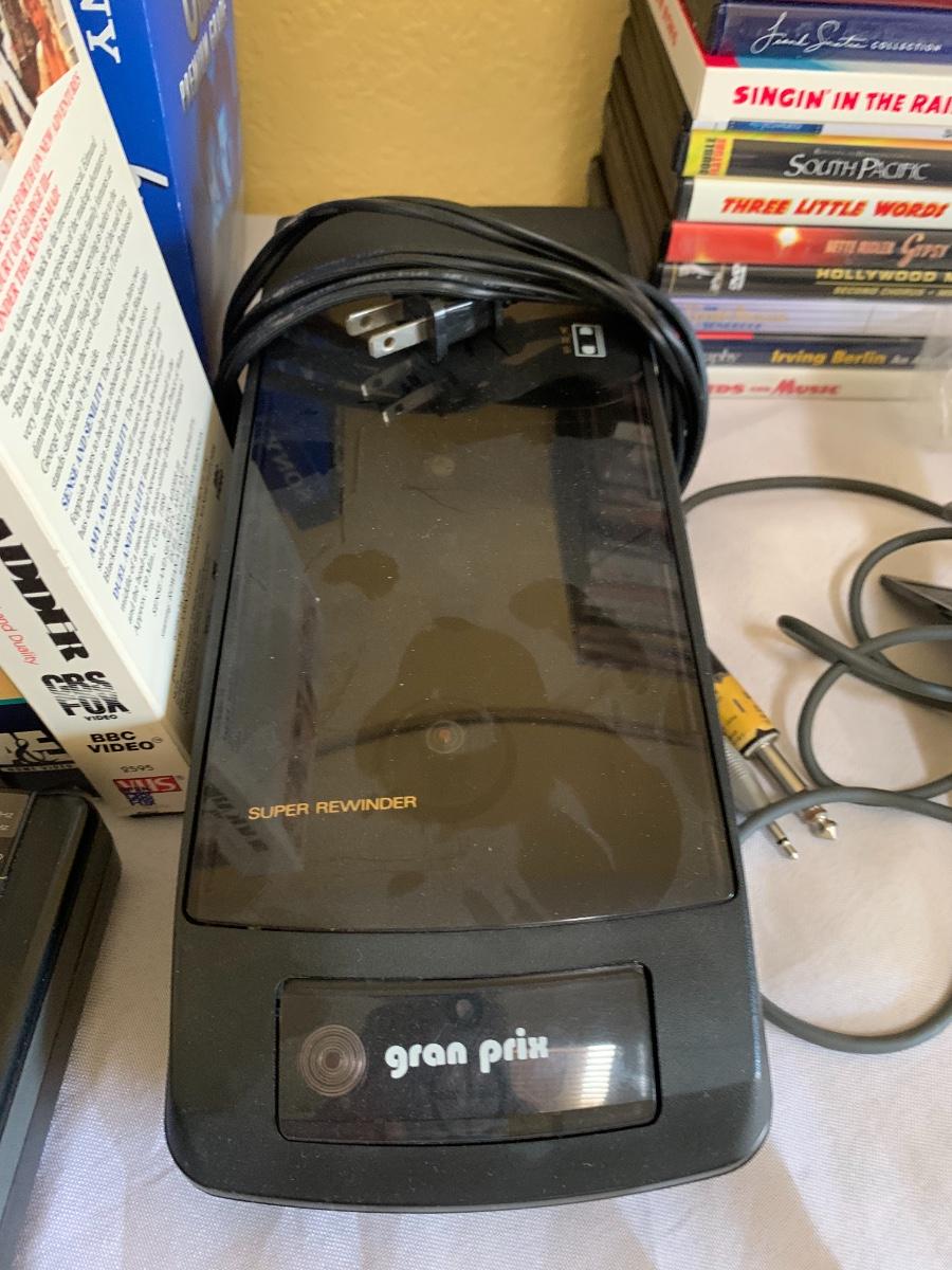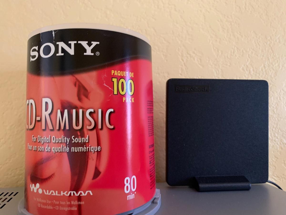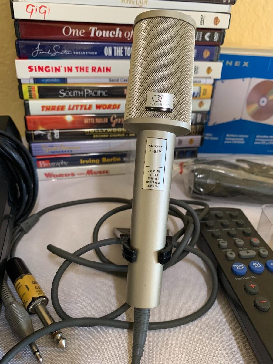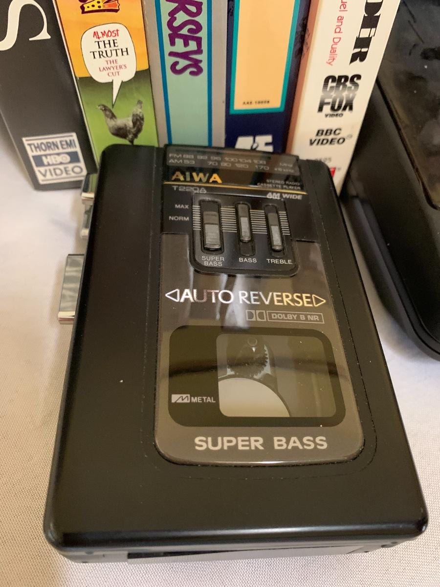Lot includes a Sony DVD player w/ VHS, a Technics dual cassette, Yamaha CD player, Sony F-99 M microphone, Aiwa walkman without headphones, various DVD and VHS, blank CDs and empty cases and more!