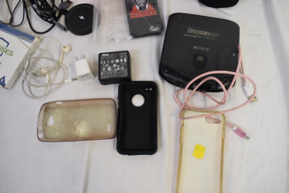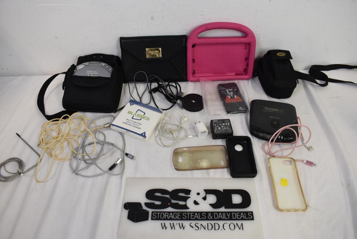 Electronics Lot: Phone Cases, CD Players, Phone Chargers