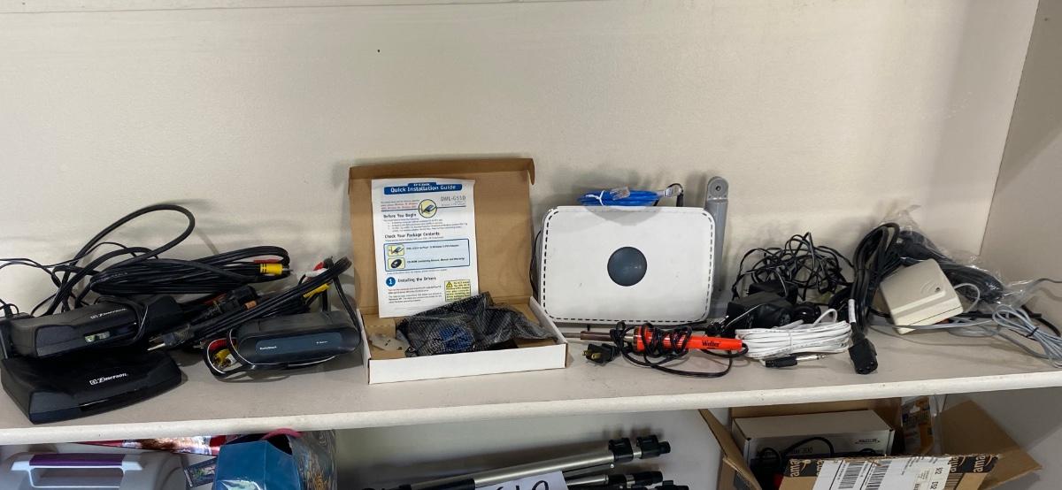 ELECTRONICS LOT-NETGEAR ROUTER, D-LINK, RCA ADAPTERS & OTHER LIKE ITEMS