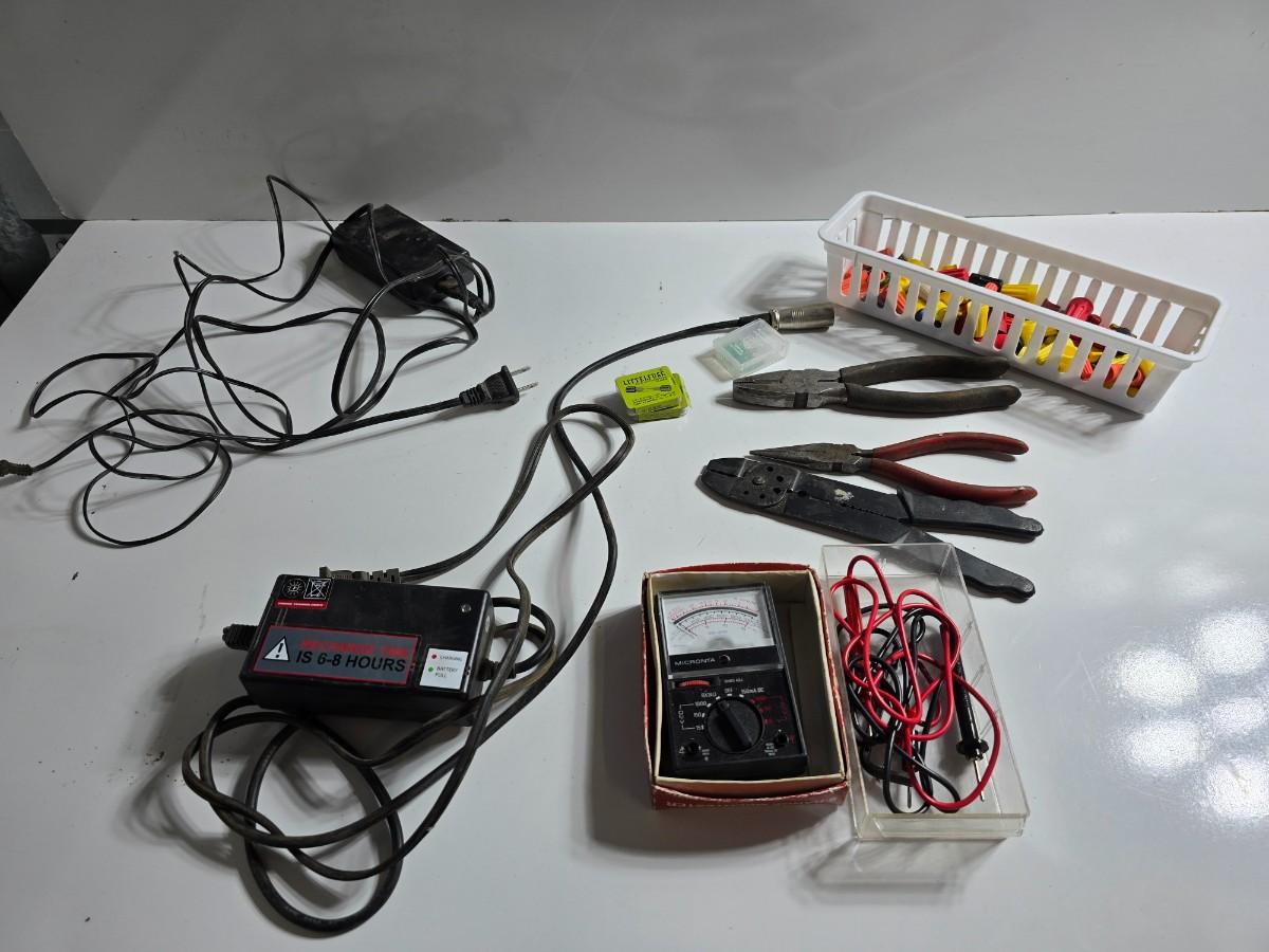 Electronics & Wiring Tool Lot – Crimpers, Multimeter, Chargers & More