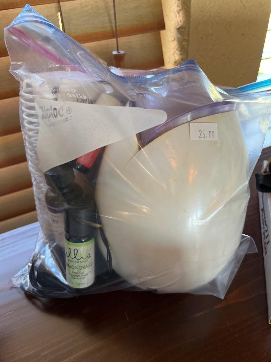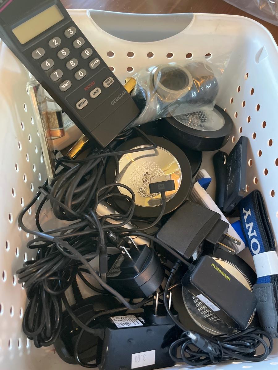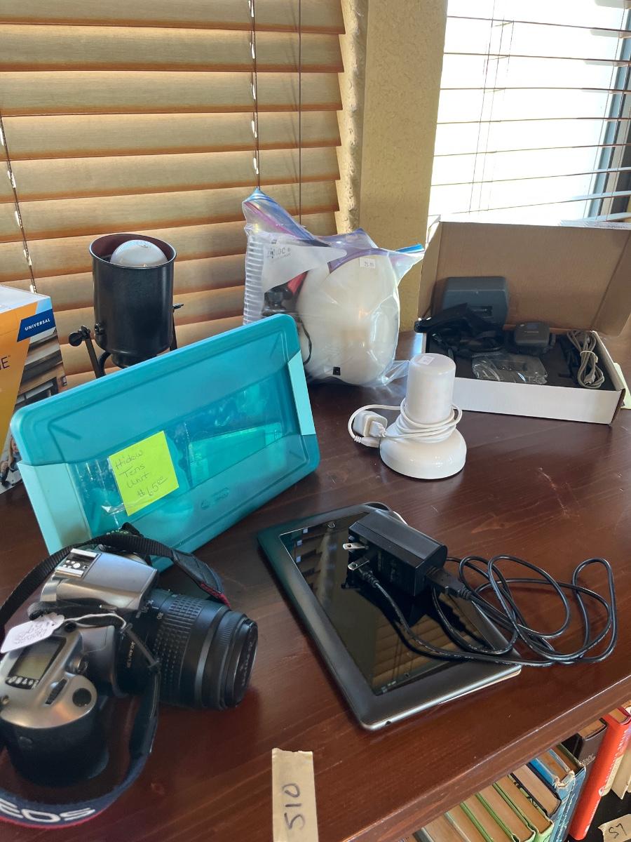 Cannon Camera, Barnes and noble Nook reader, Young Living Diffuser,, misc cords.