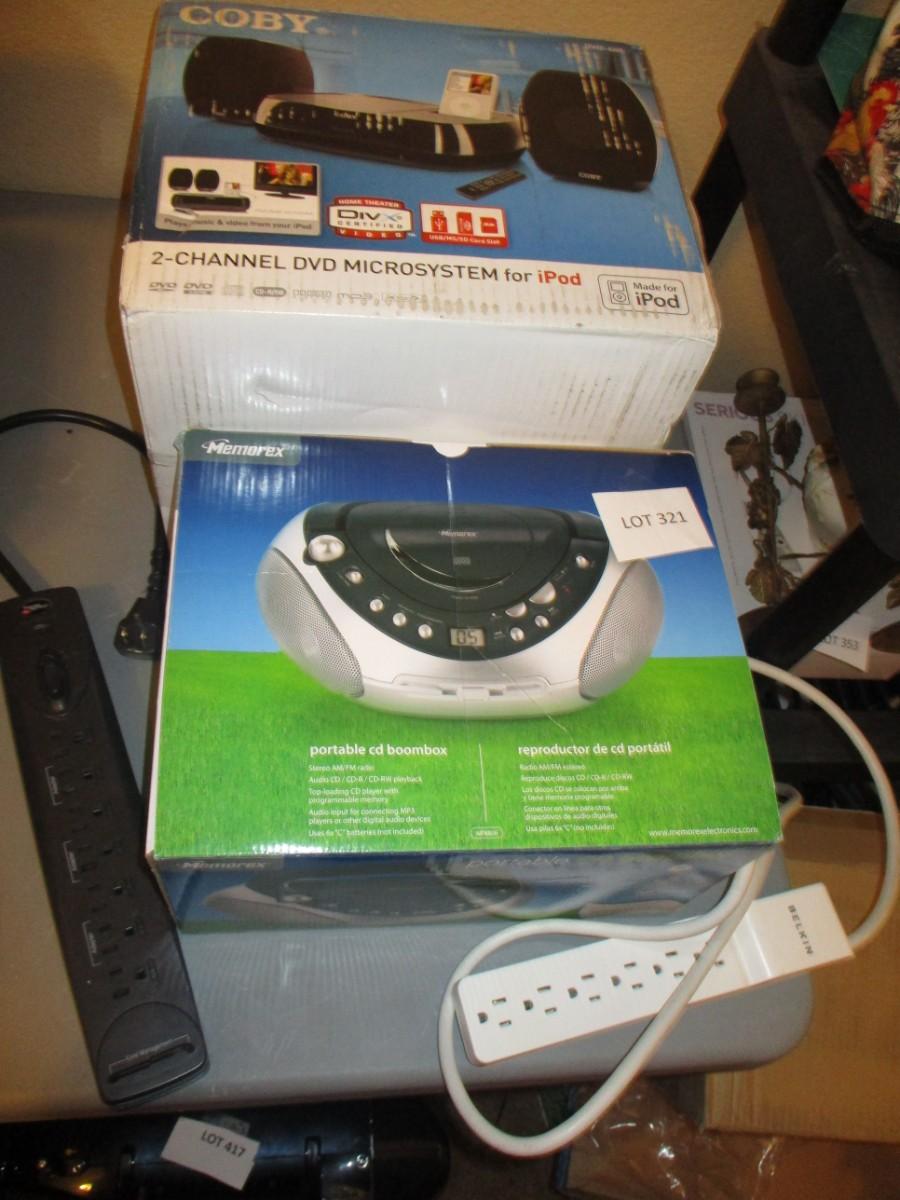 portable CDE Boombox and 2 Channel DVD Micro Ipod. New in boxes