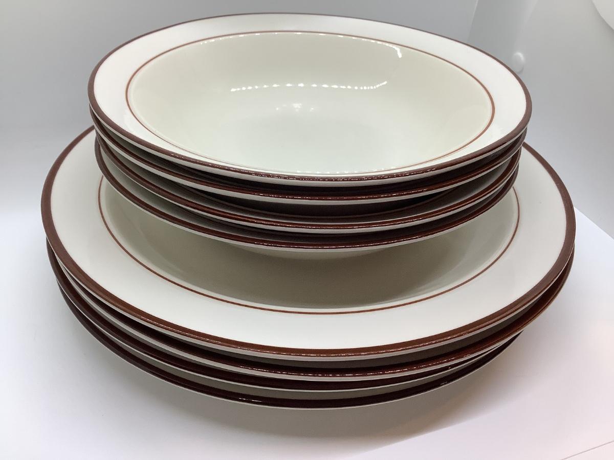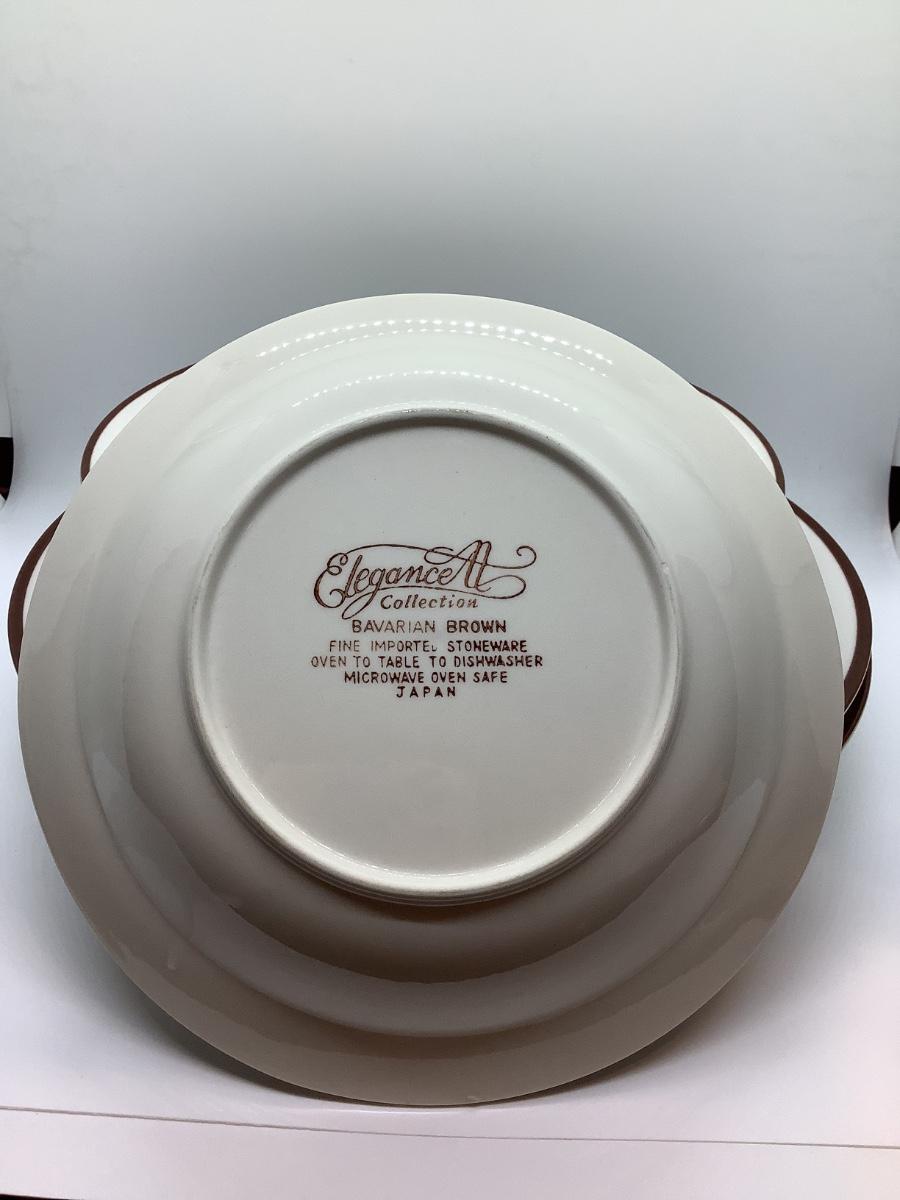 Elegance Collectiom, Bavarian Brown, 4 bowls, 4 plates, fine imported stoneware, oven to table to dishwasher, microwave oven safe- Japan