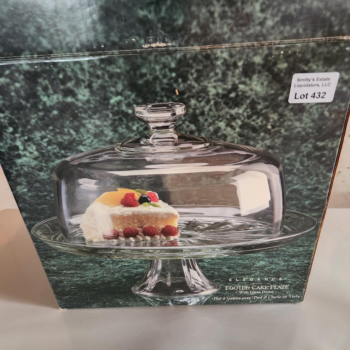 Elegance Footed Cake Plate with Glass Dome Indiana Glass USA