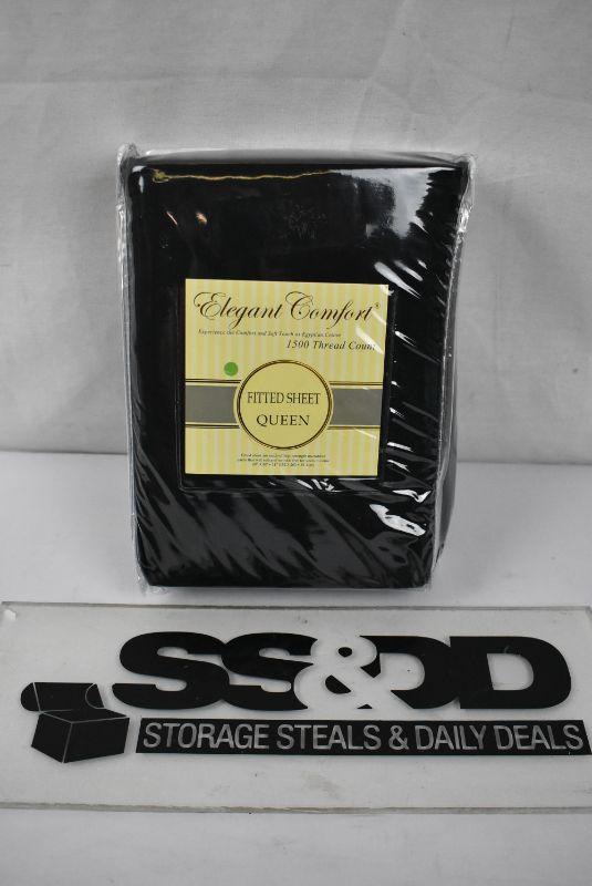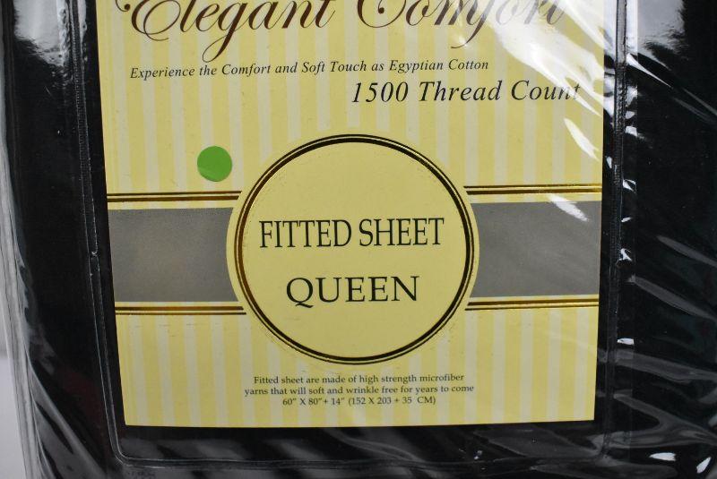 Elegant Comfort 1500 Thread Count 1-Piece Fitted Sheet, Queen Size, Black - New