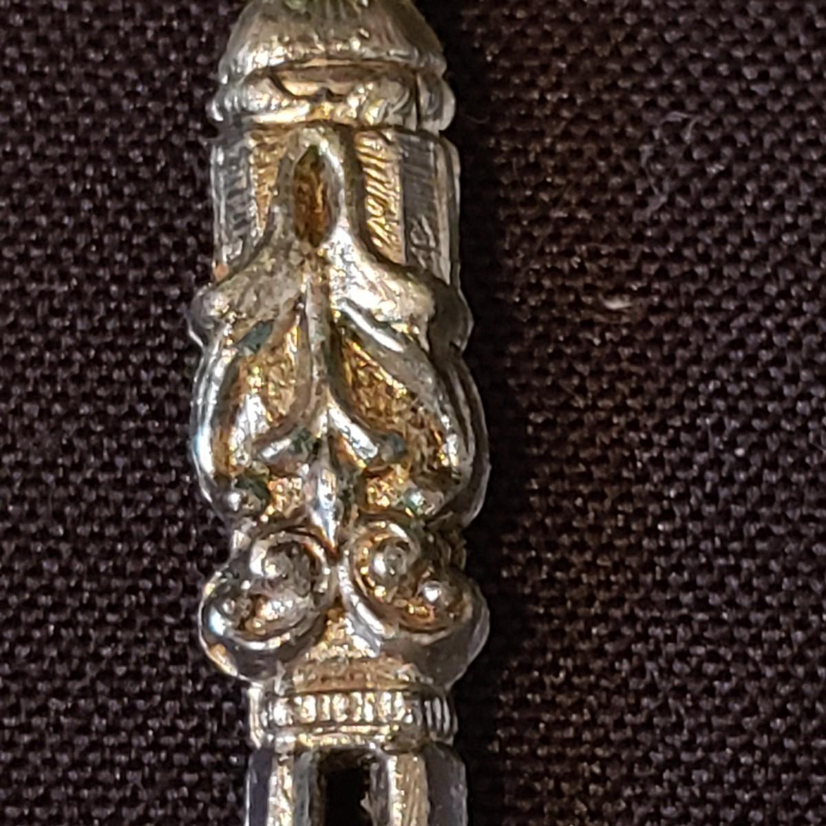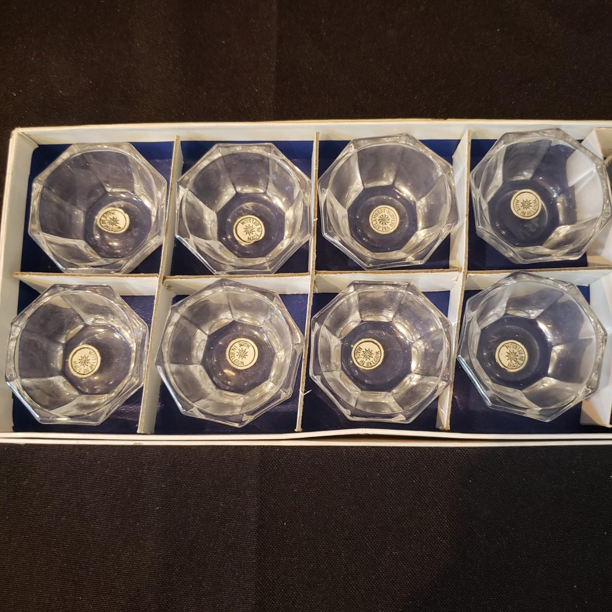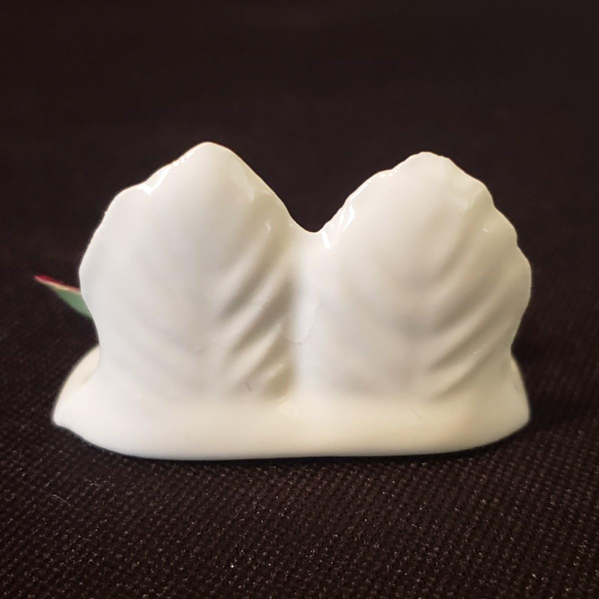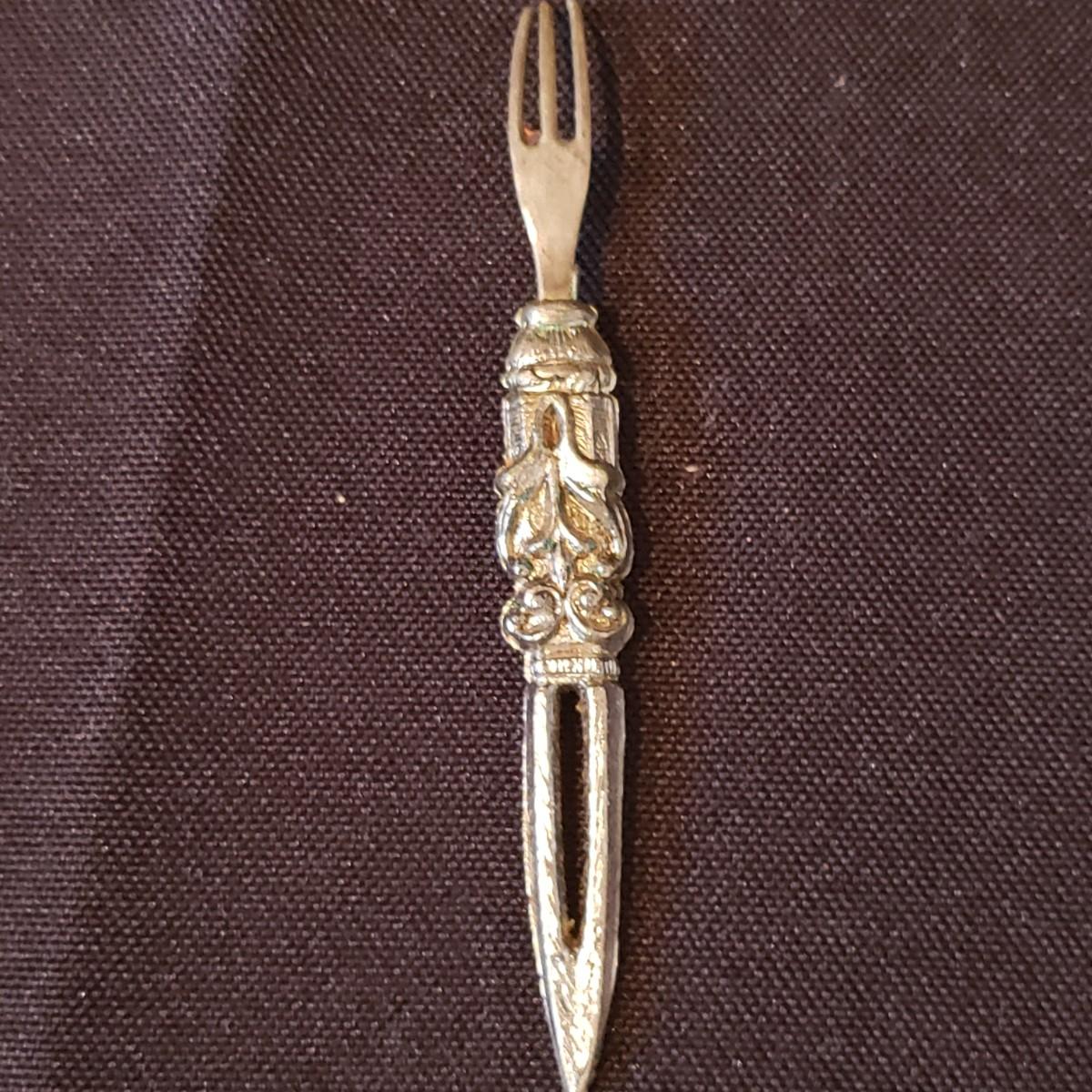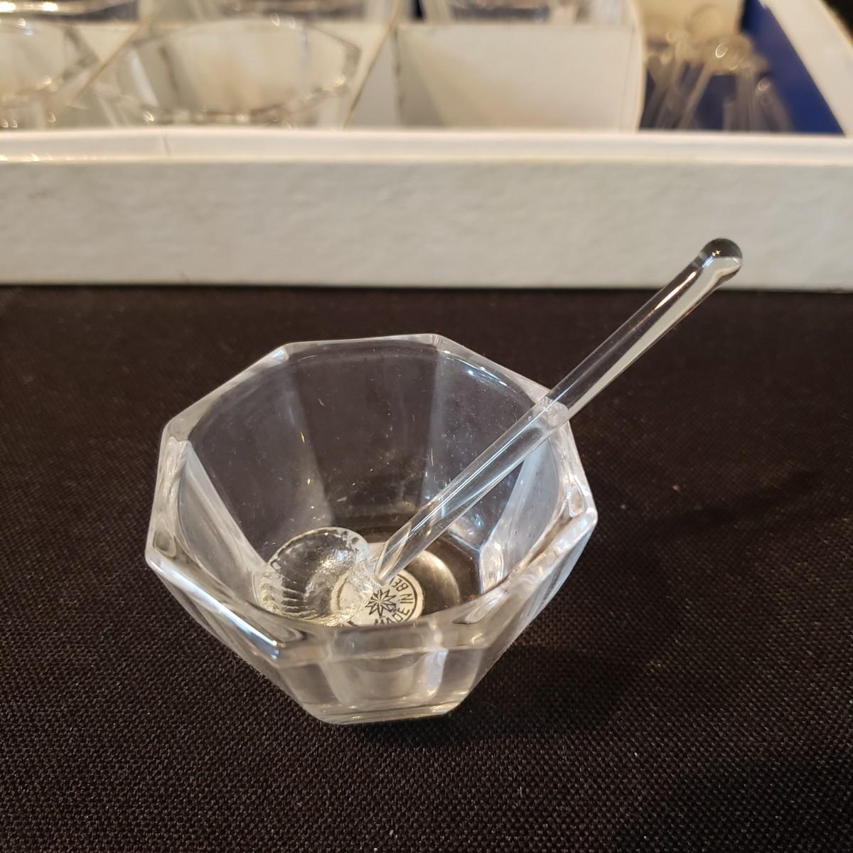This elegant entertaining lot features six Sheffield forks with ornate handles, and eight crystal salt dishes with shell spoons. The vintage set of six cocktail forks have beautiful craftsmanship in the detailing. There appears to be no markings on these, but it's hard to tell, see pictures. Finally, there are eight card holders made by Ainsley and are fine bone china.