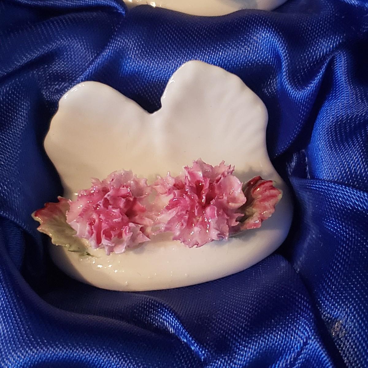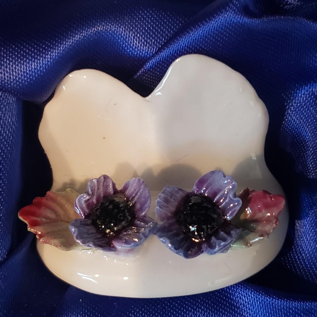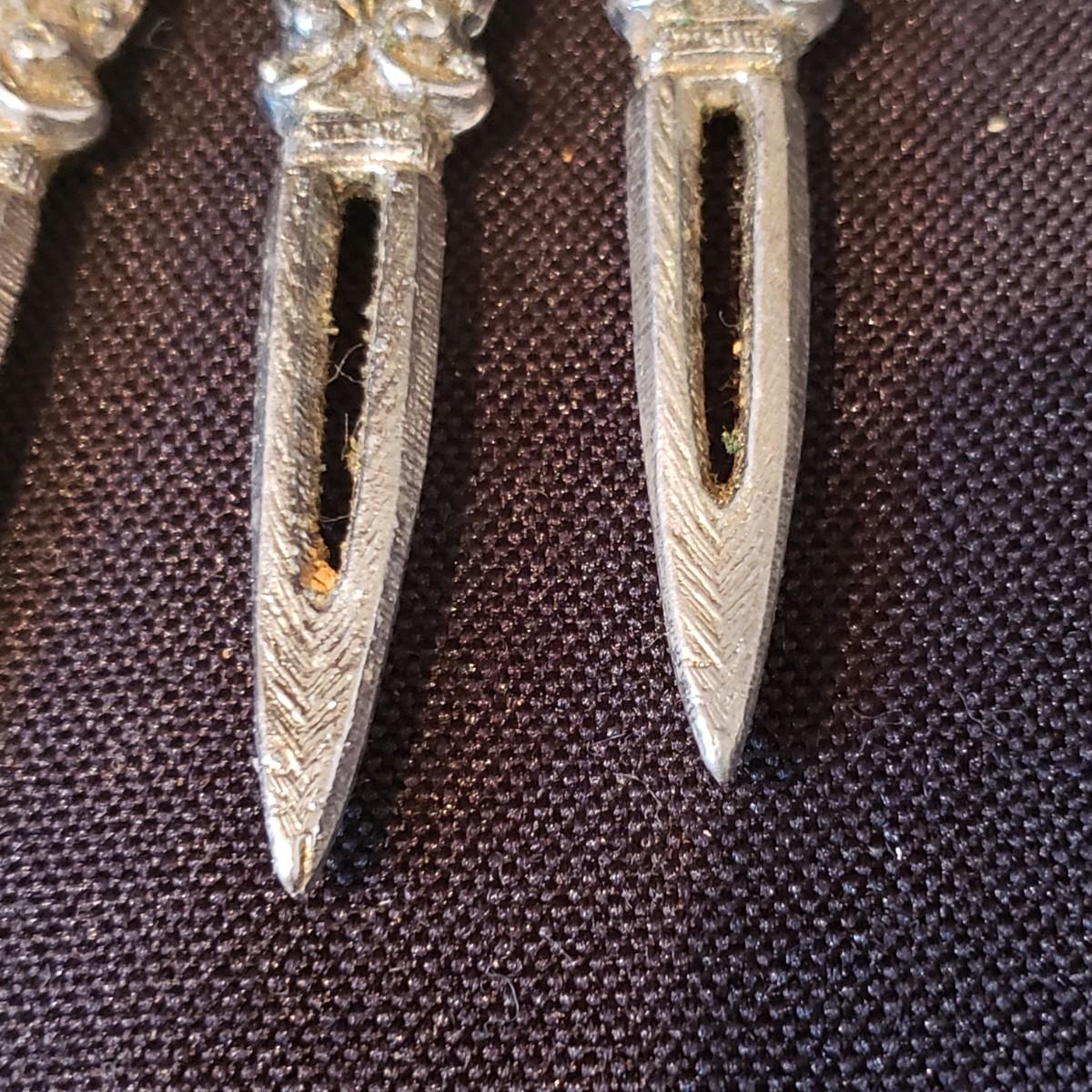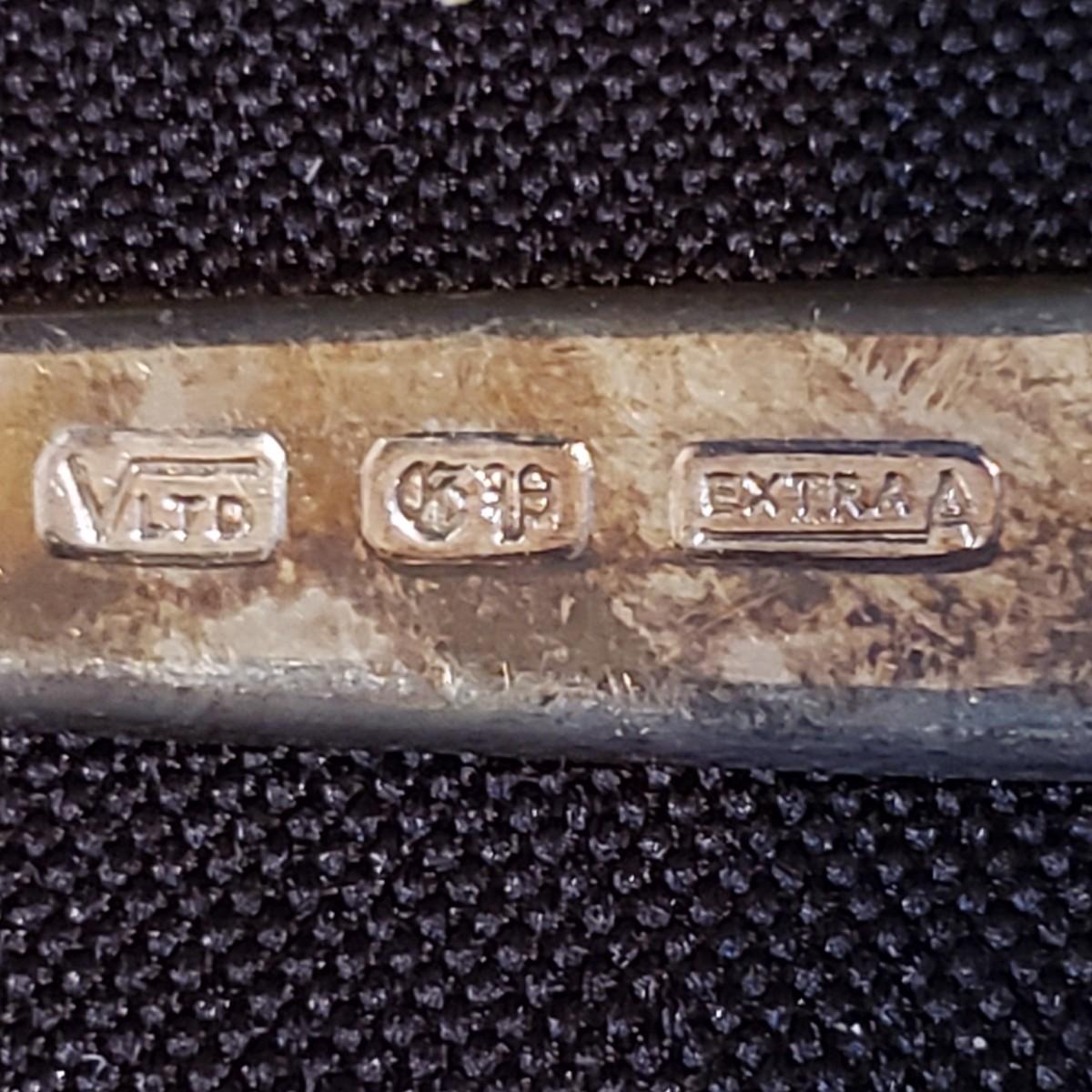 This elegant entertaining lot features six Sheffield forks with ornate handles, and eight crystal salt dishes with shell spoons. The vintage set of six cocktail forks have beautiful craftsmanship in the detailing. There appears to be no markings on these, but it's hard to tell, see pictures. Finally, there are eight card holders made by Ainsley and are fine bone china.