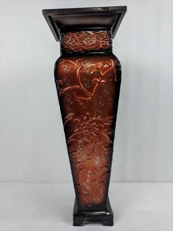 Elegant Expressions by Hosley Metal Embossed Square Vase, Red/Gold - New