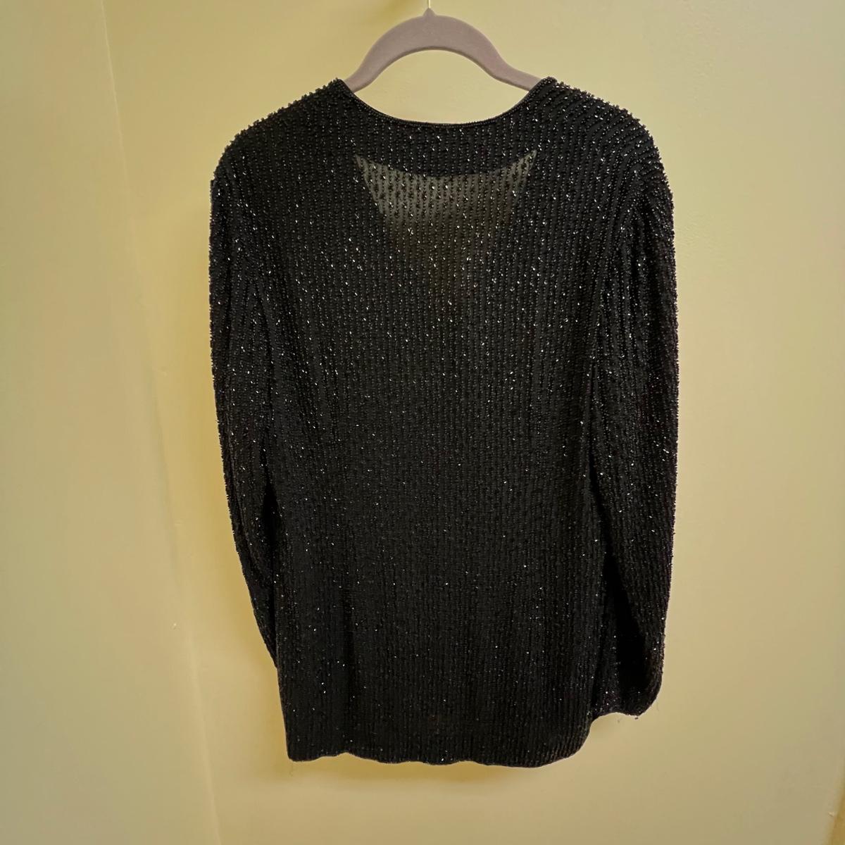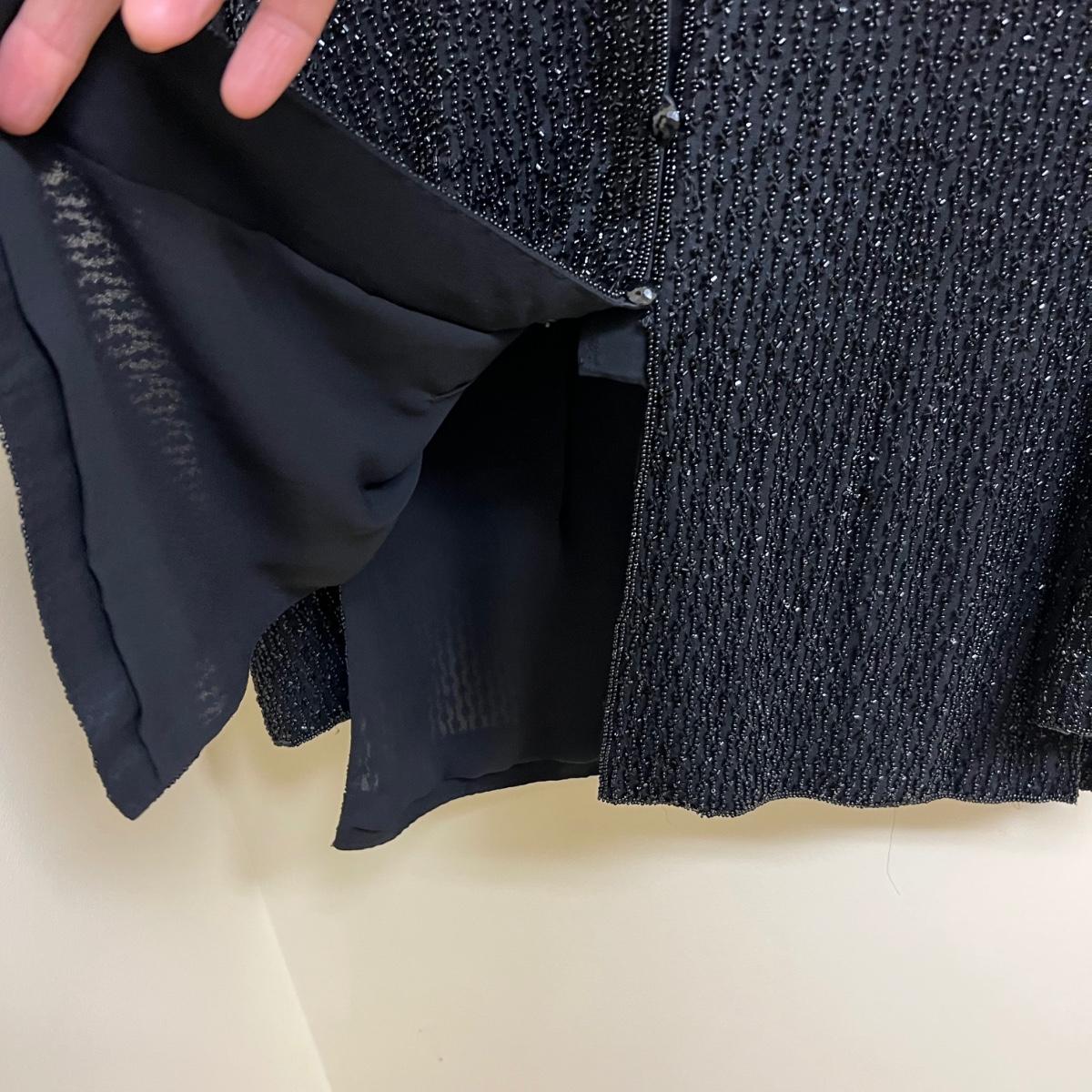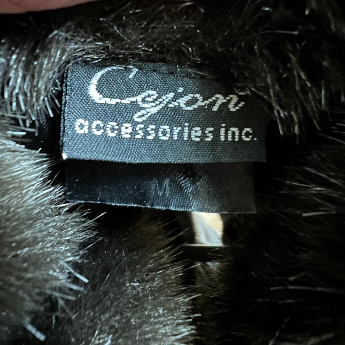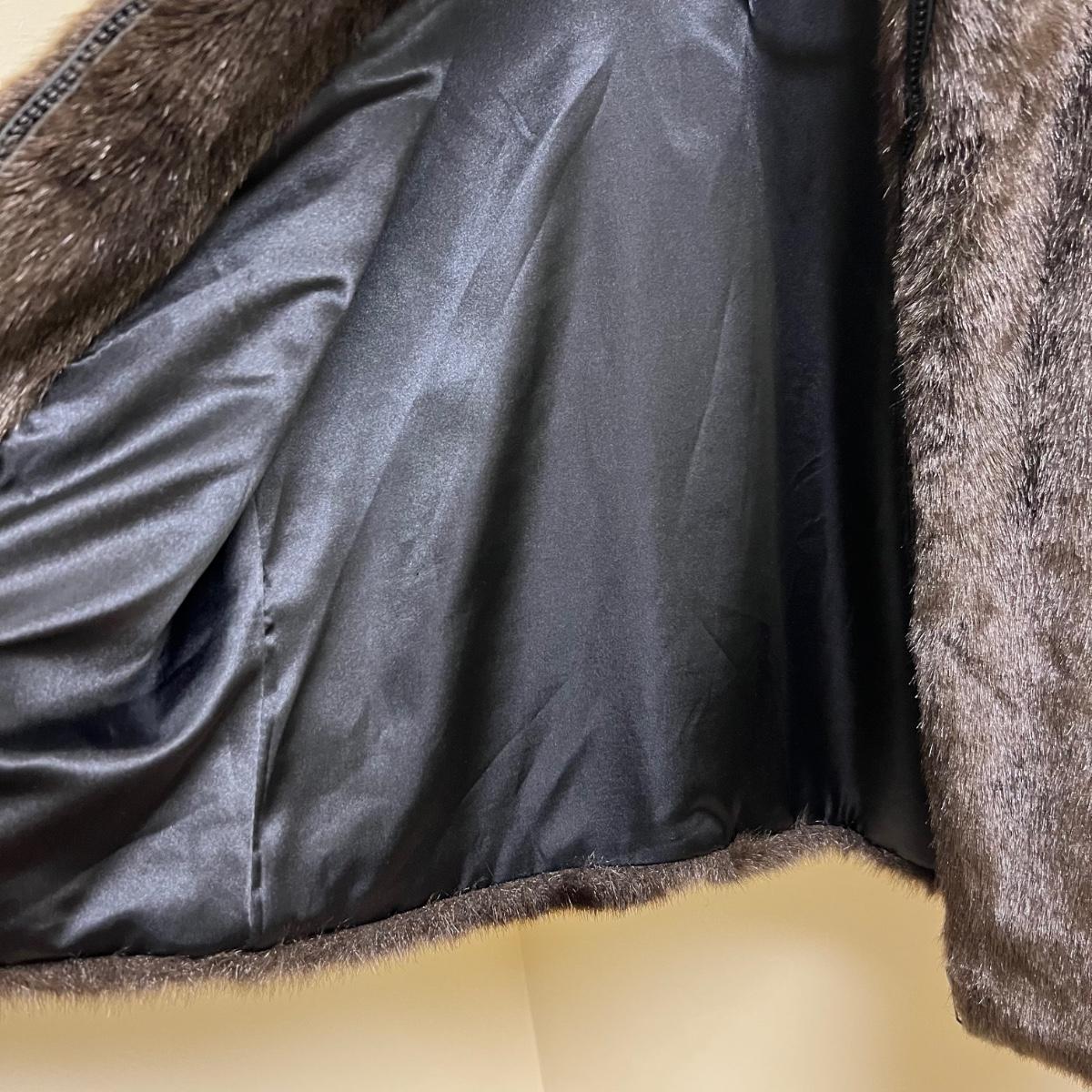 Three faux fur items of clothing in this lot includes a brown and a black matching ponchos and a zippered vest; vest is size 14, ponchos have no labels. The black beaded jacket is Kay Unger and size 6.