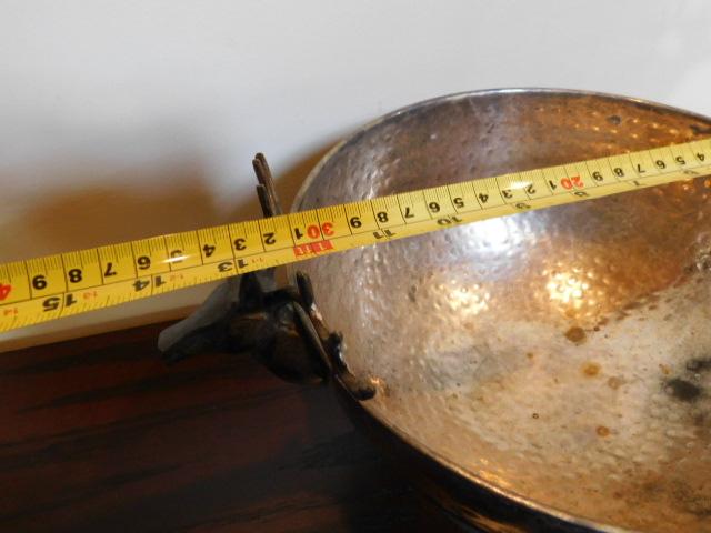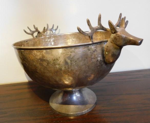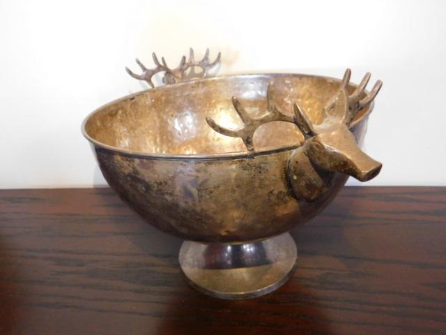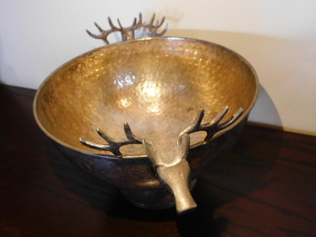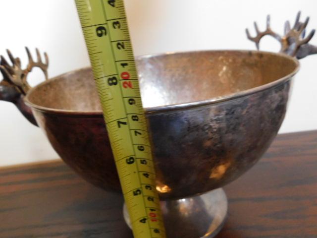 Elegant Hammered Metal Stag Head Handle Serving Bowl on Pedestal Foot 14"x7" very nice item for cabin or rustic setting