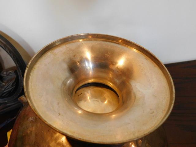 Elegant Hammered Metal Stag Head Handle Serving Bowl on Pedestal Foot 14"x7"