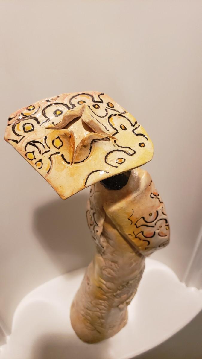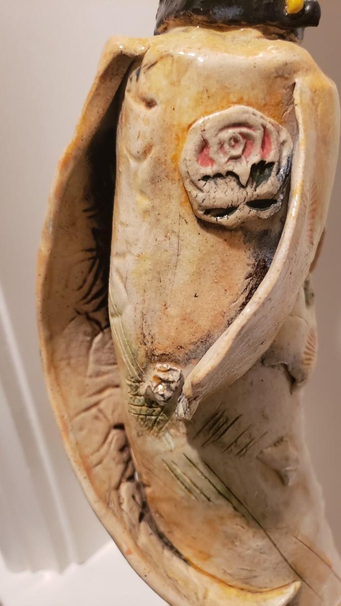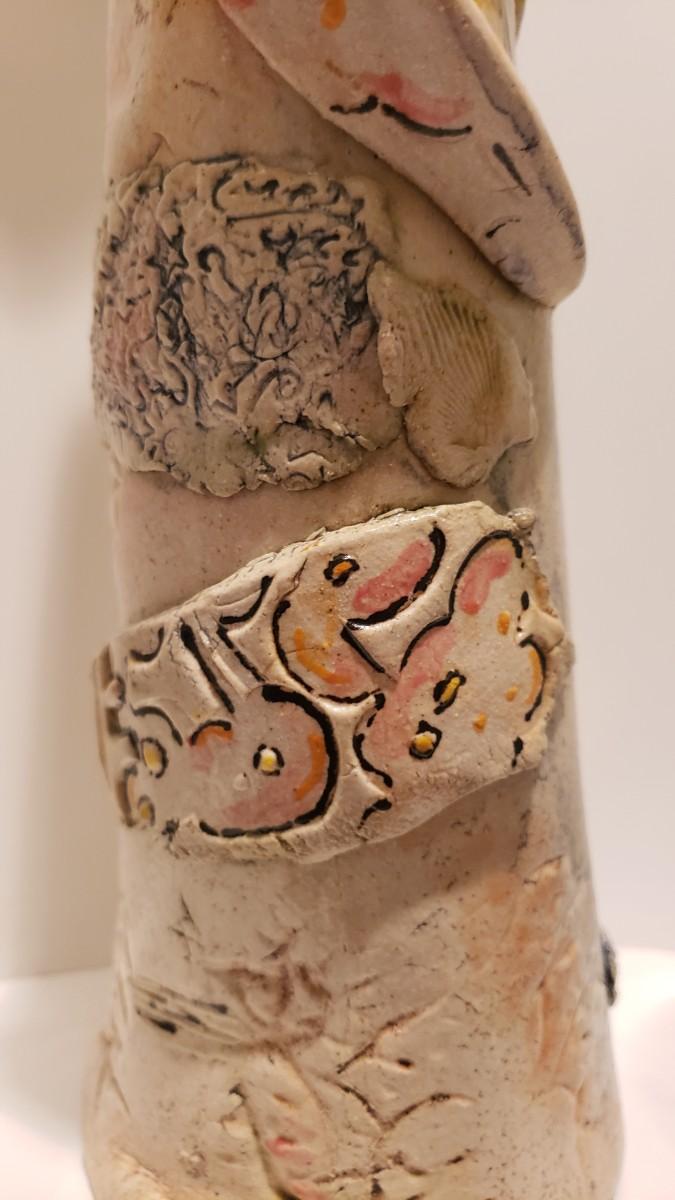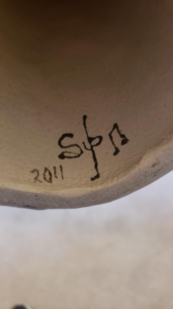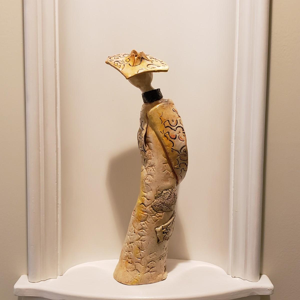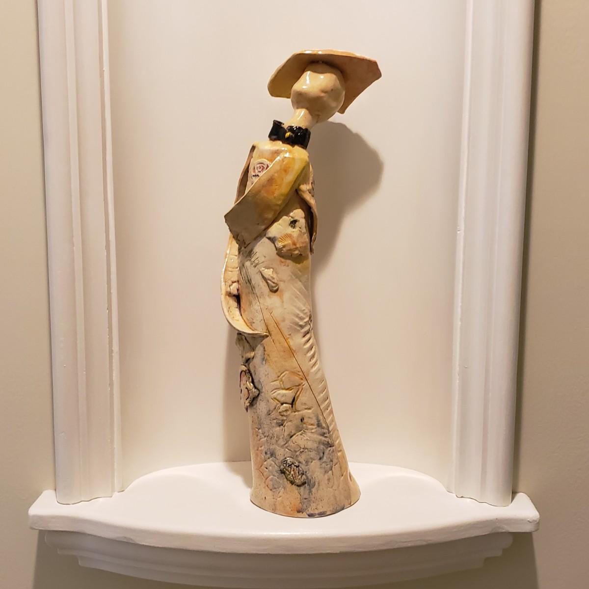 This signed piece of pottery by unknown artist is posed for elegance. She stands approximately 4"x17"H.