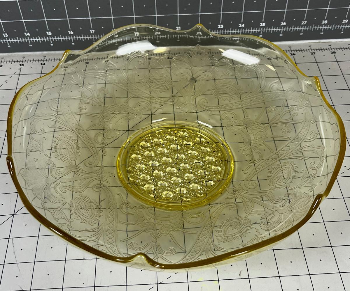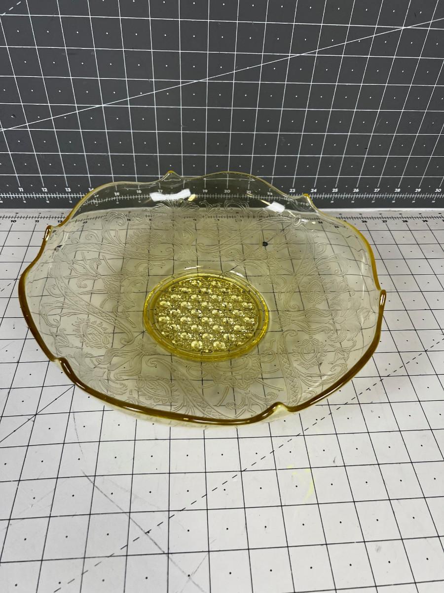 Elegant Lancaster Glass Landrum Console Bowl Yellow Topaz Color