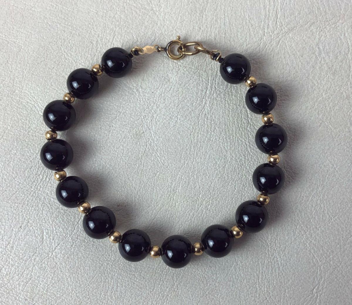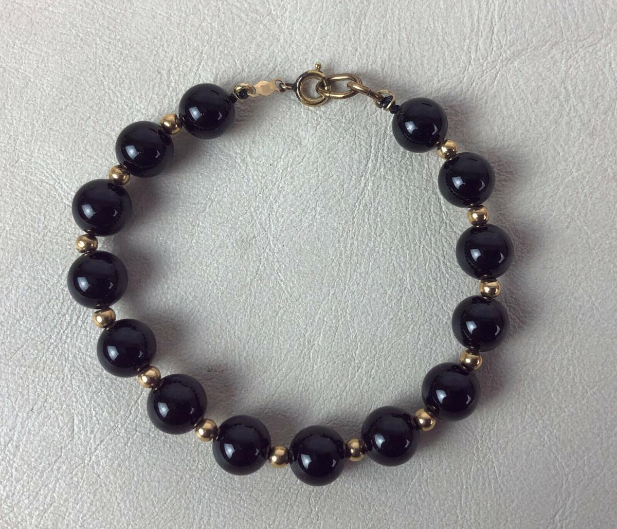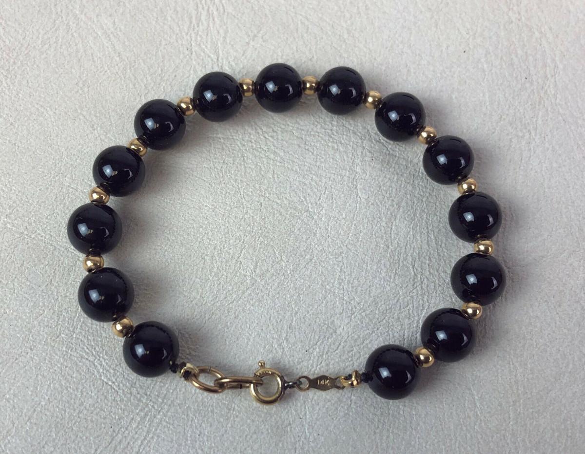 In excellent condition here is six inch long Onyx Bead bracelet..stamped both 14k and 14k gold-filled spacer beads...Total weight 10.1 grams...This estate jewlery is offered with no reserve“🦆