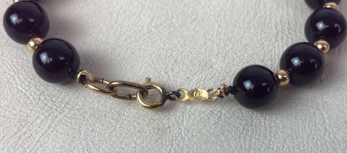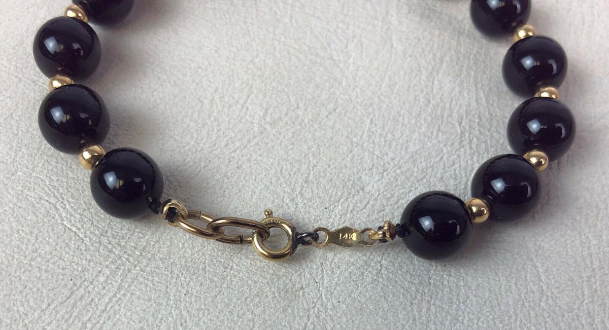 elegant ONYX BEAD & GOLD BRACELET 14K