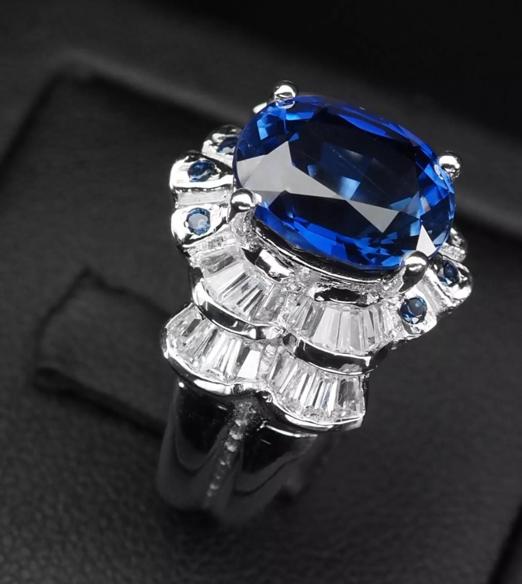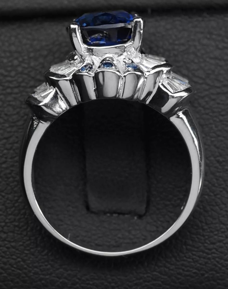 Elegant Royal Blue Sapphire 5.15Ct 925 Sterling Silver White Gold Plated Ring
