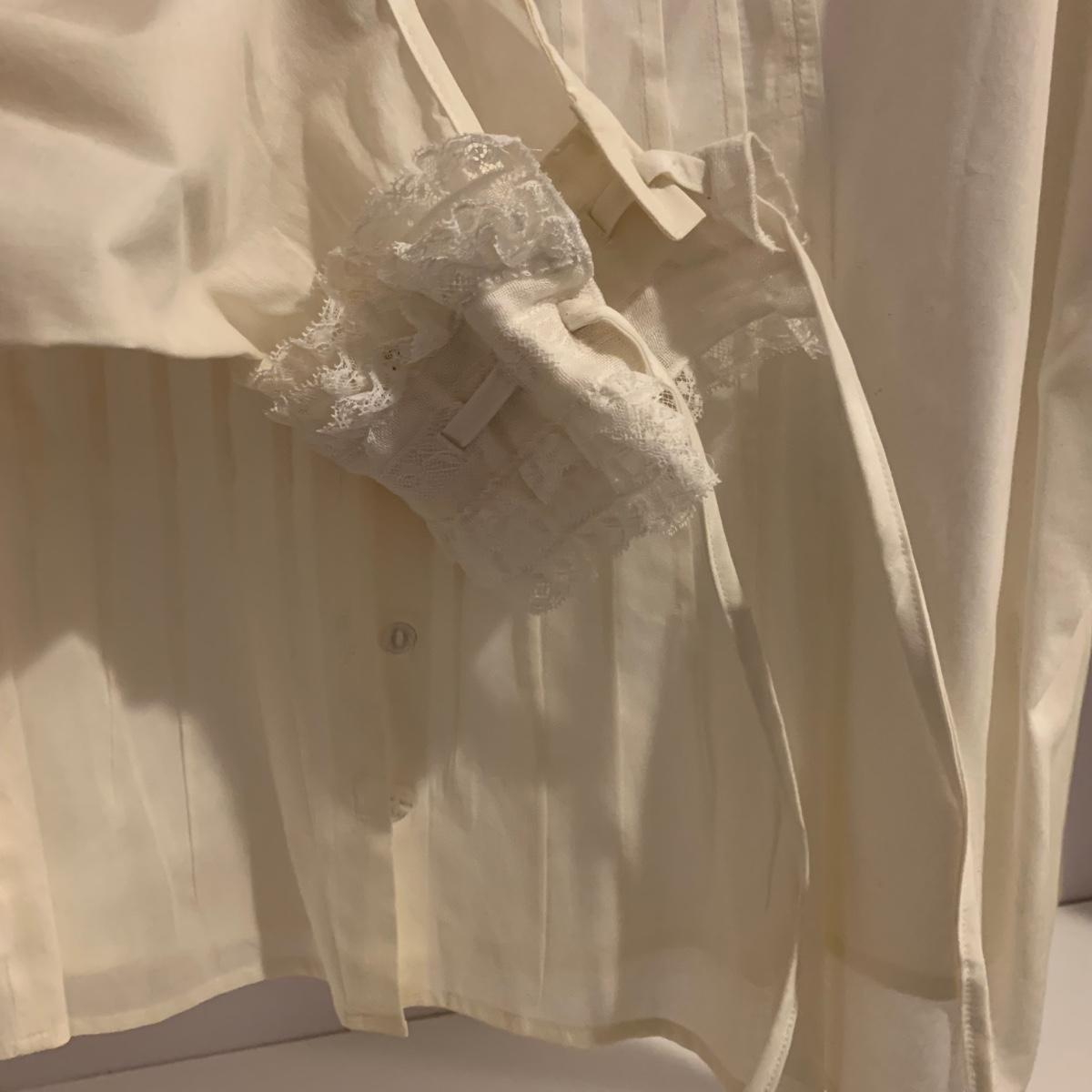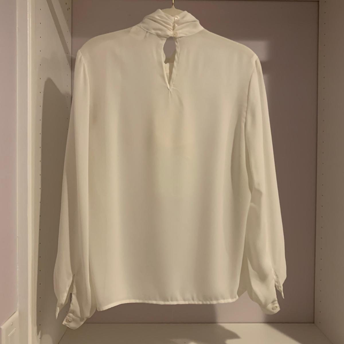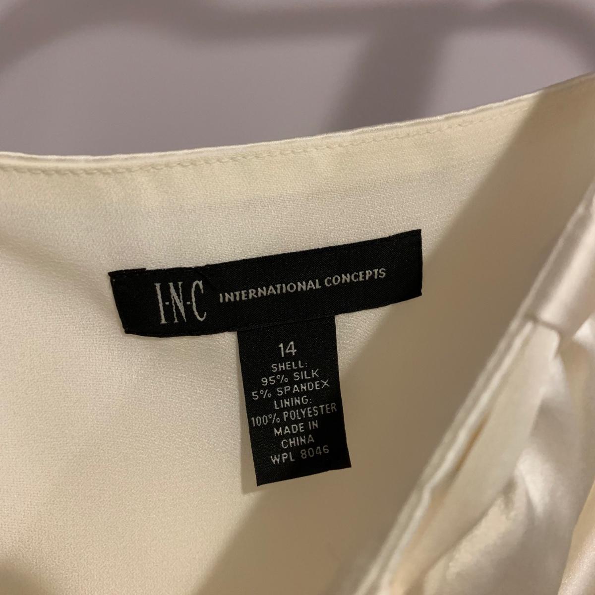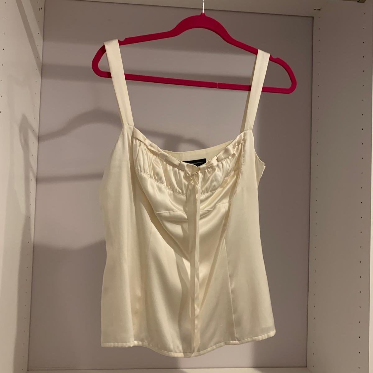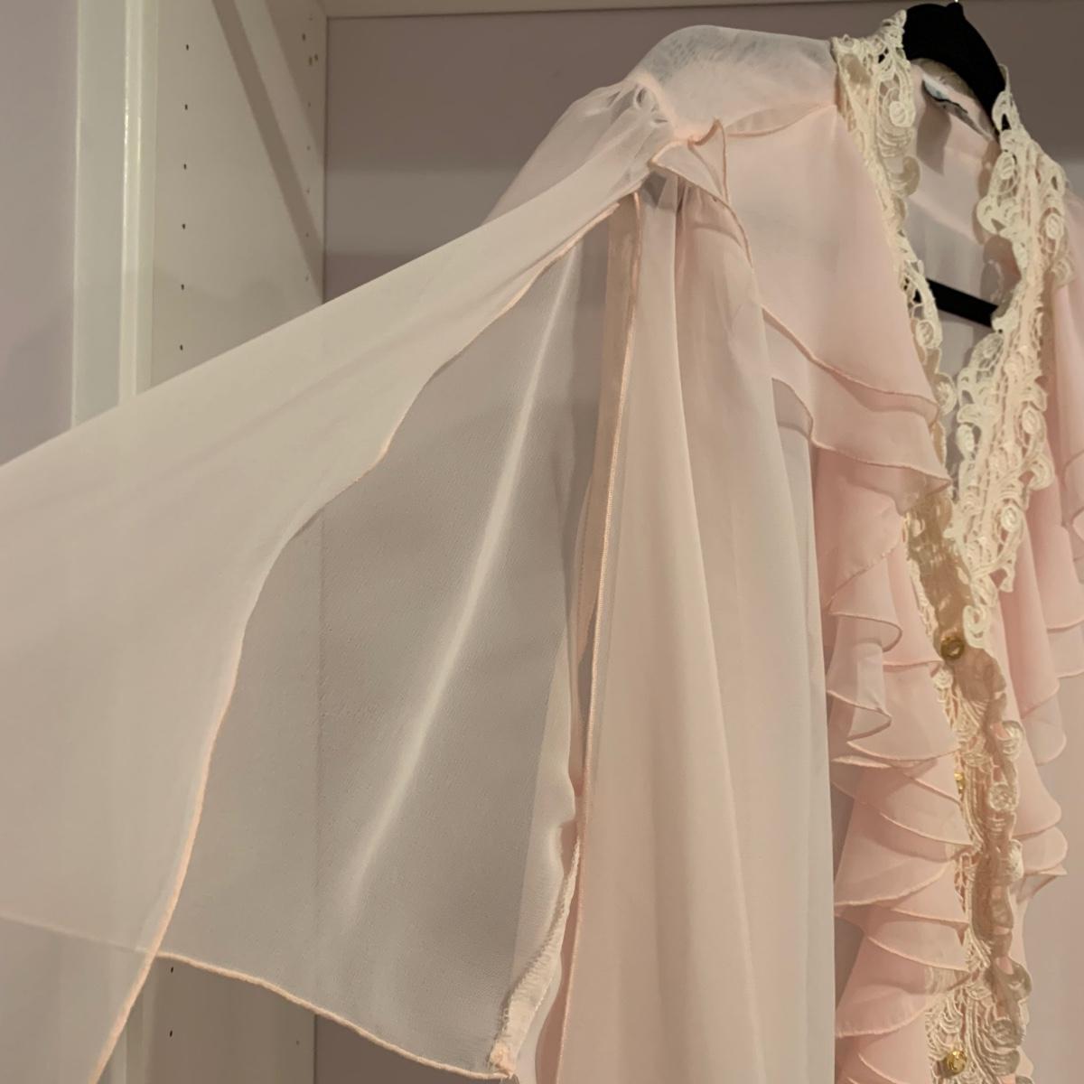 A collection of ten elegant and luxurious women’s tops made of silk, chiffon, and lace. Tops are size L-XL. There is a delicate baby pink top from Paris, a silk ivory top from Cache with its tag still attached, silk tops from Worth, International Concepts, Classiques Entier, and Talbots, and more.
