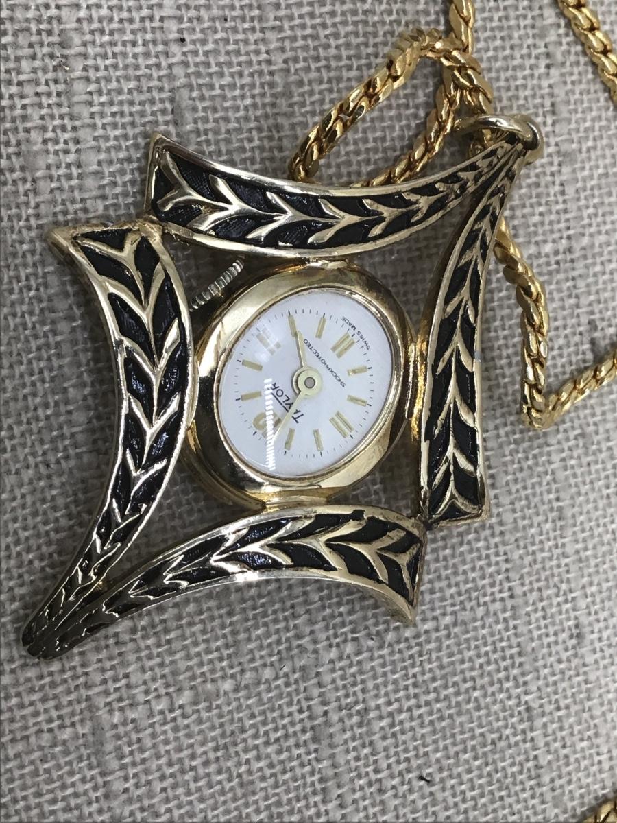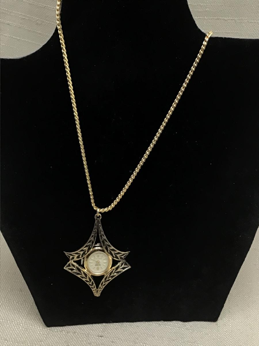 Elegant Swiss MadeTaylor Diamond Shaped Mechanical Pendant Watch Necklace