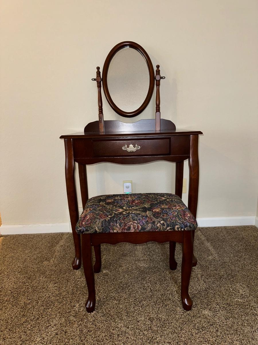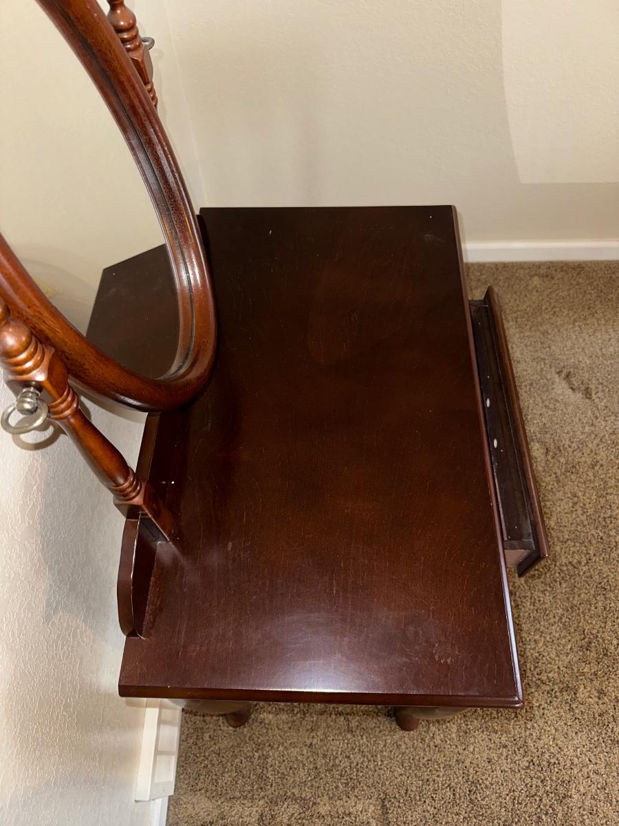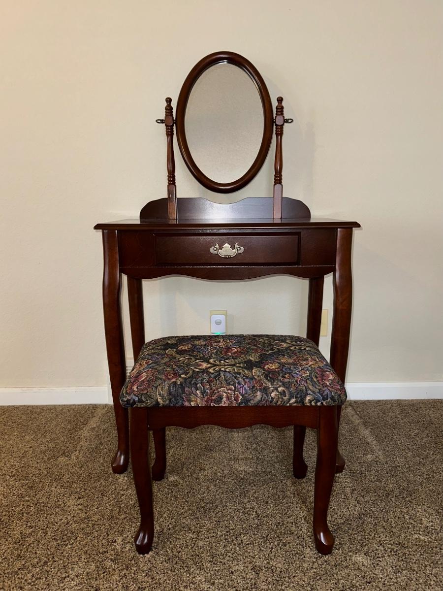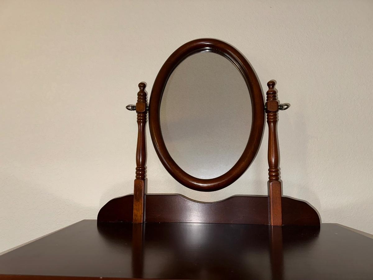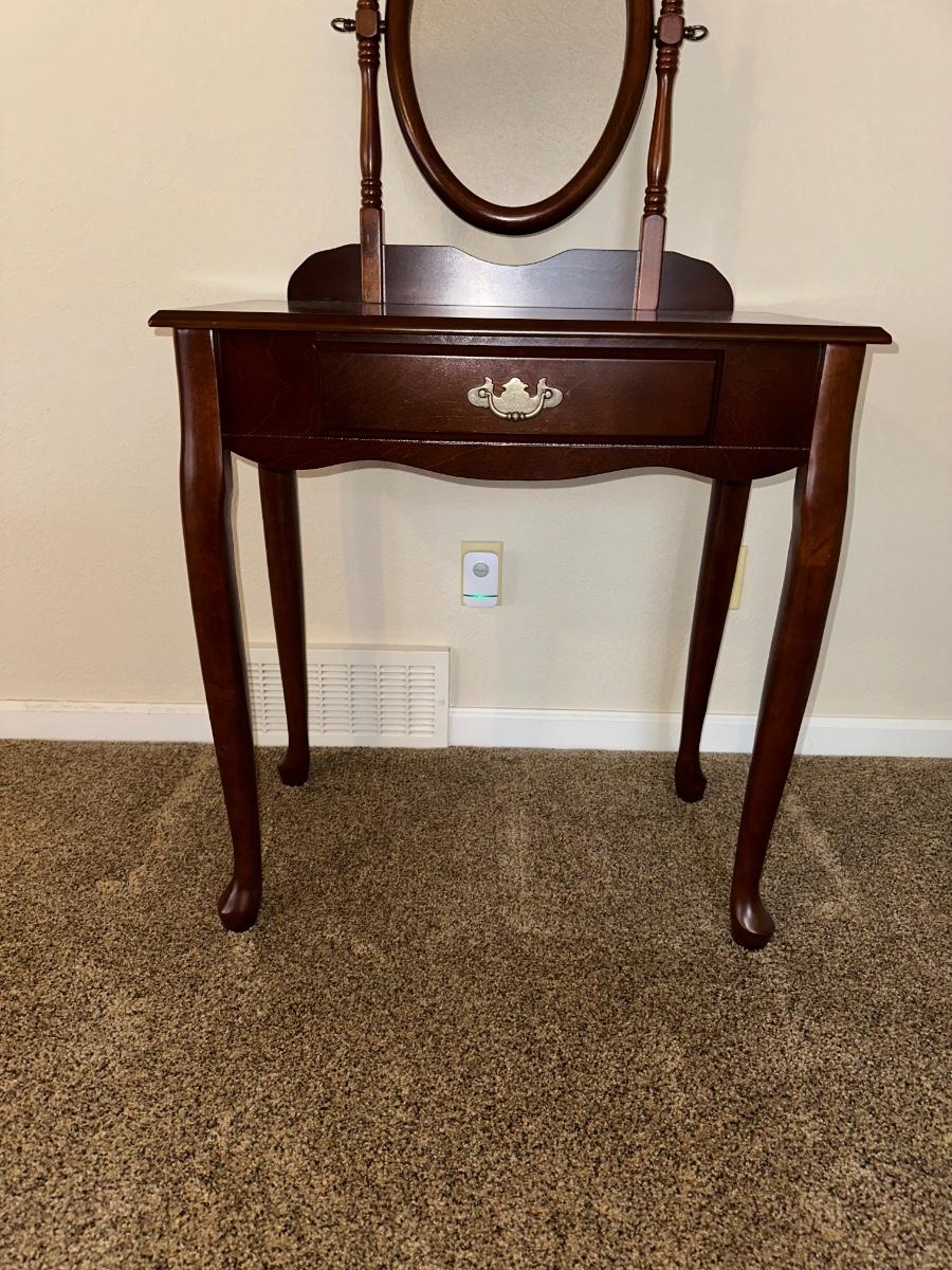 Table with mirror measures 51-1/2”H x 28”W x 16”D