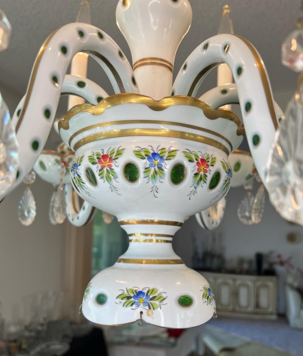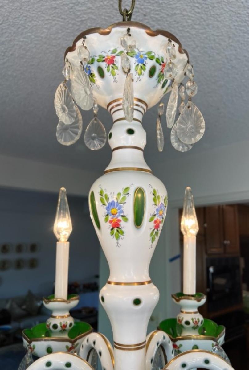 1. Elegant Vintage Italian Porcelain Chandelier Hand-Painted Florals & Crystal Drops-Tested and Works