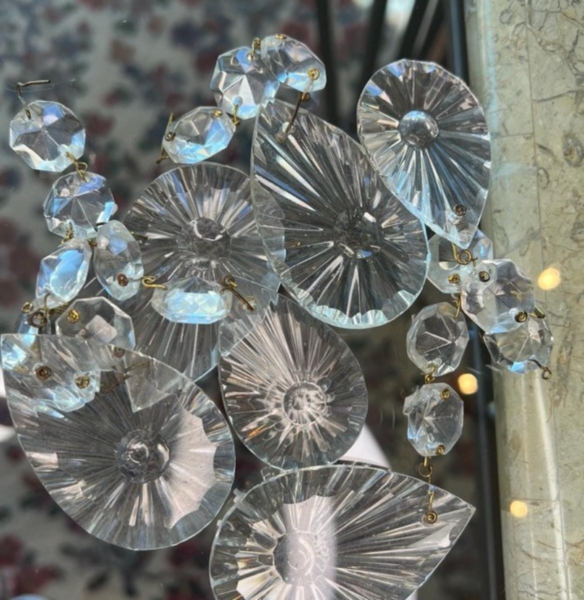 Elegant Vintage Italian Porcelain Chandelier, Hand-Painted Florals & Crystal Drops